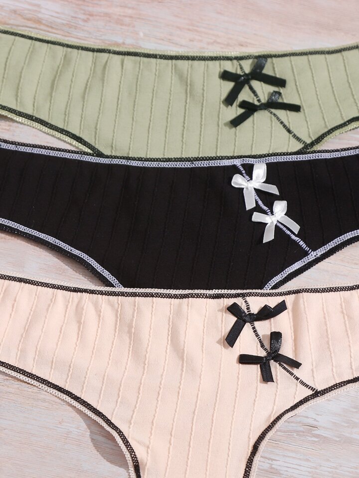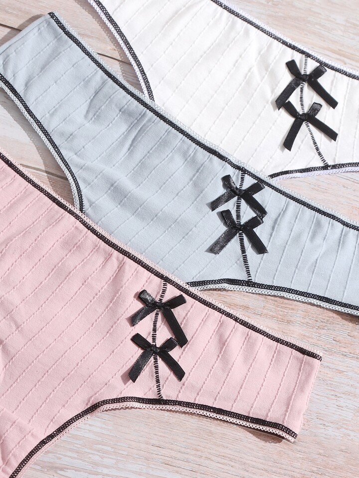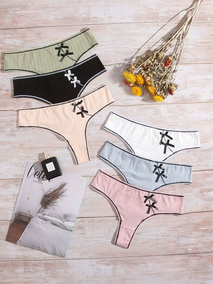 6 pièces Set de culottes à liseré contrastant à nœud papillon