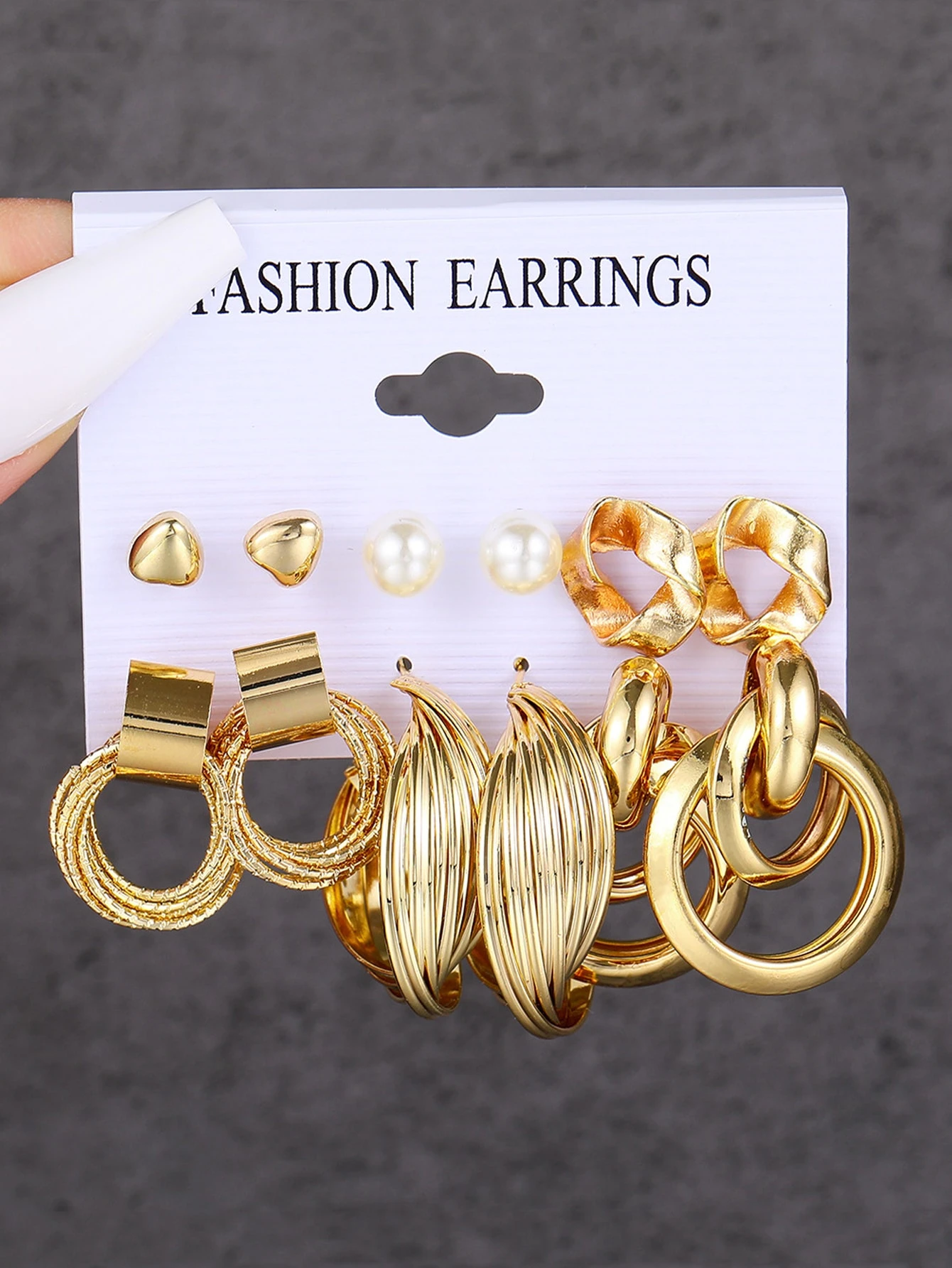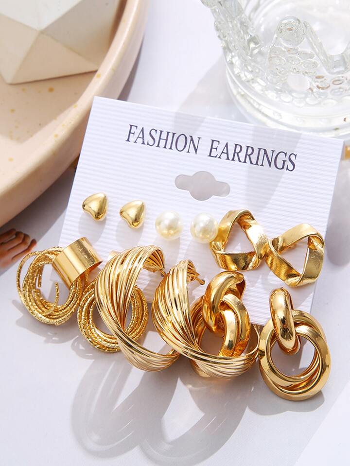 6 paires/set Boucles d'oreilles à détail cœur et fausse perle