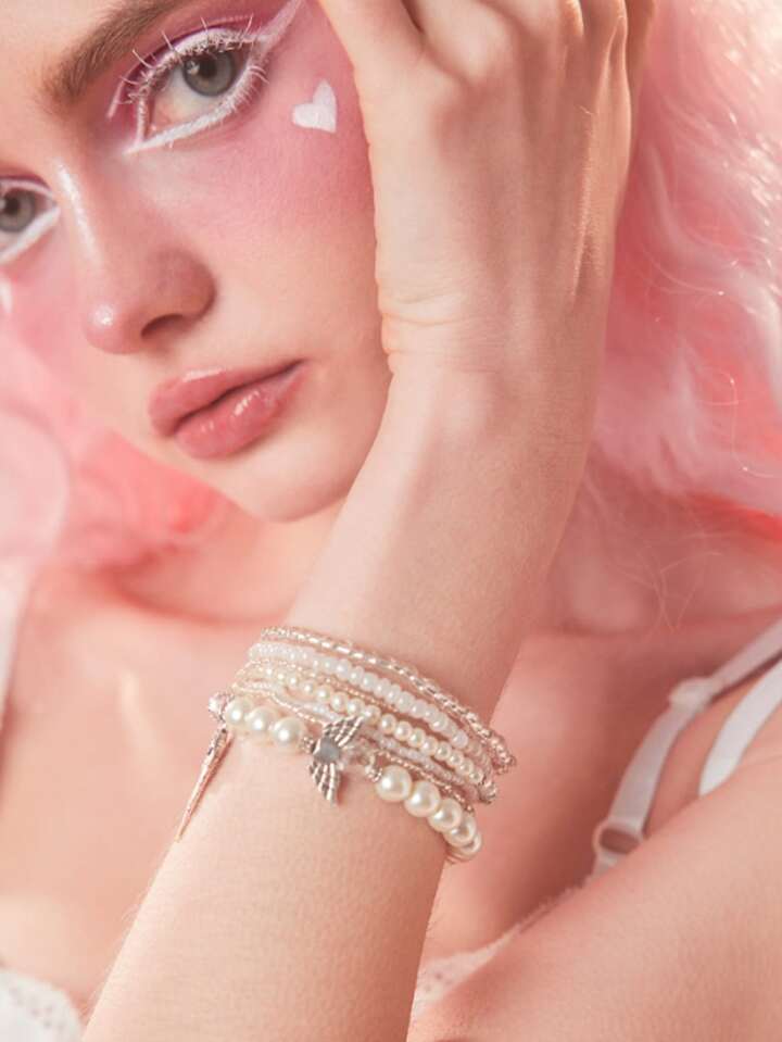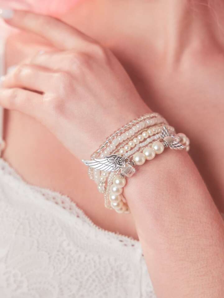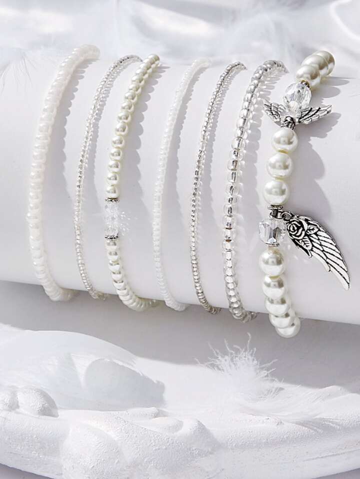 7 pièces/set Bracelet Perlé Feuille & À Fausse Perle