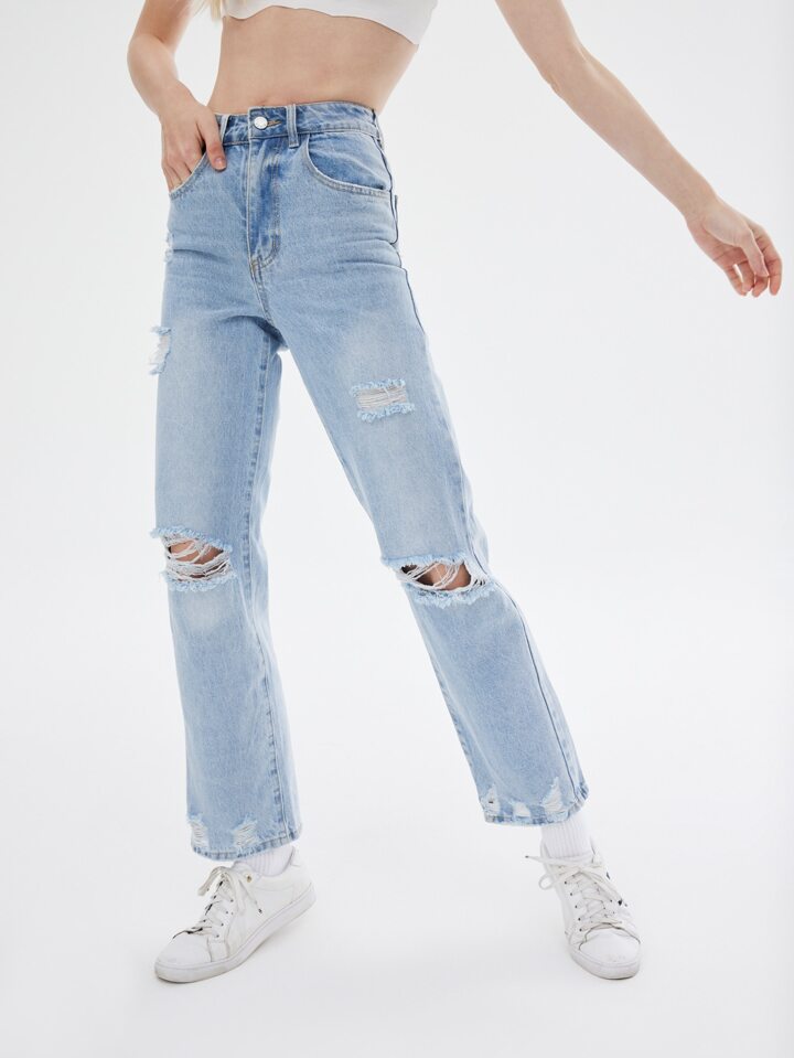 Jean ample taille haute déchiré