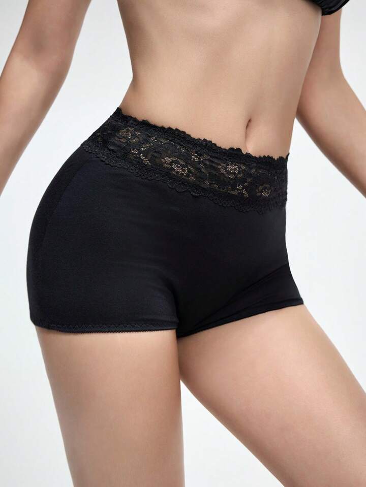 Academia 1 pièce Culotte noire décontractée en dentelle et unicolore pour femmes, convenant à tous les looks