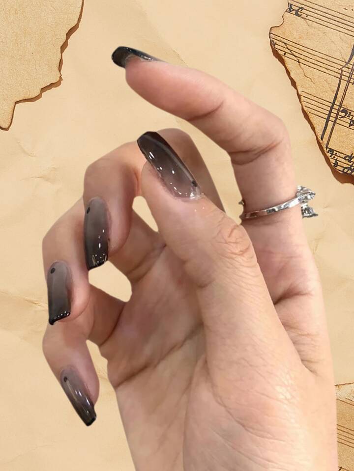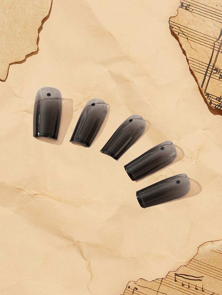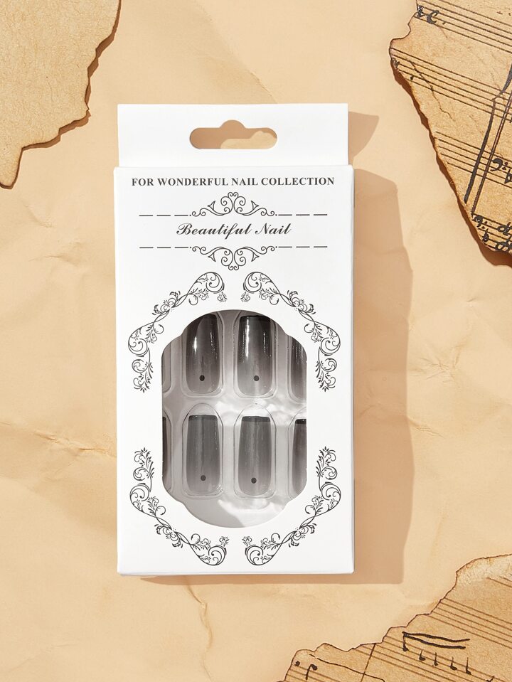 Academia 24 pièces Faux ongles long cercueil avec motif cœur