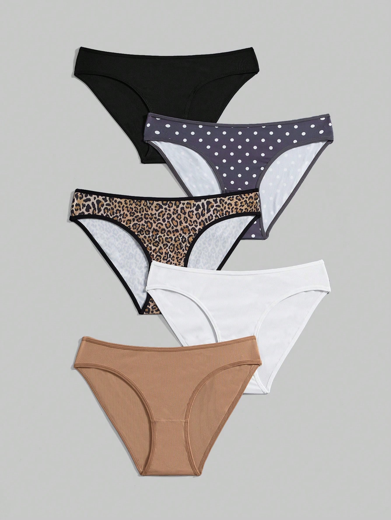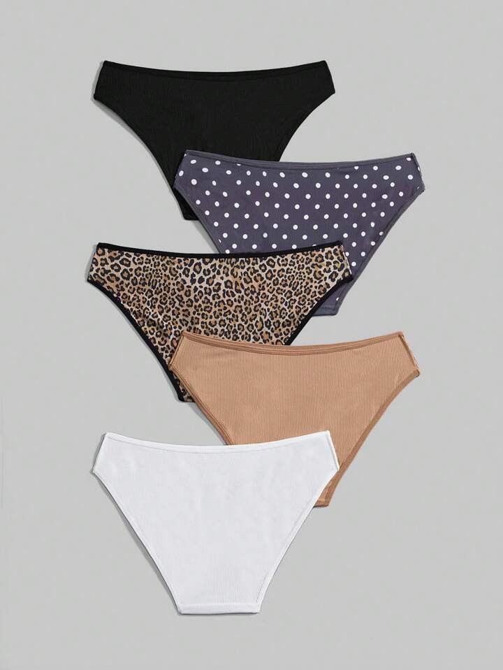 Academia 5 pièces/set Culotte triangle confortable côtelée à pois sexy léopard, style scolaire