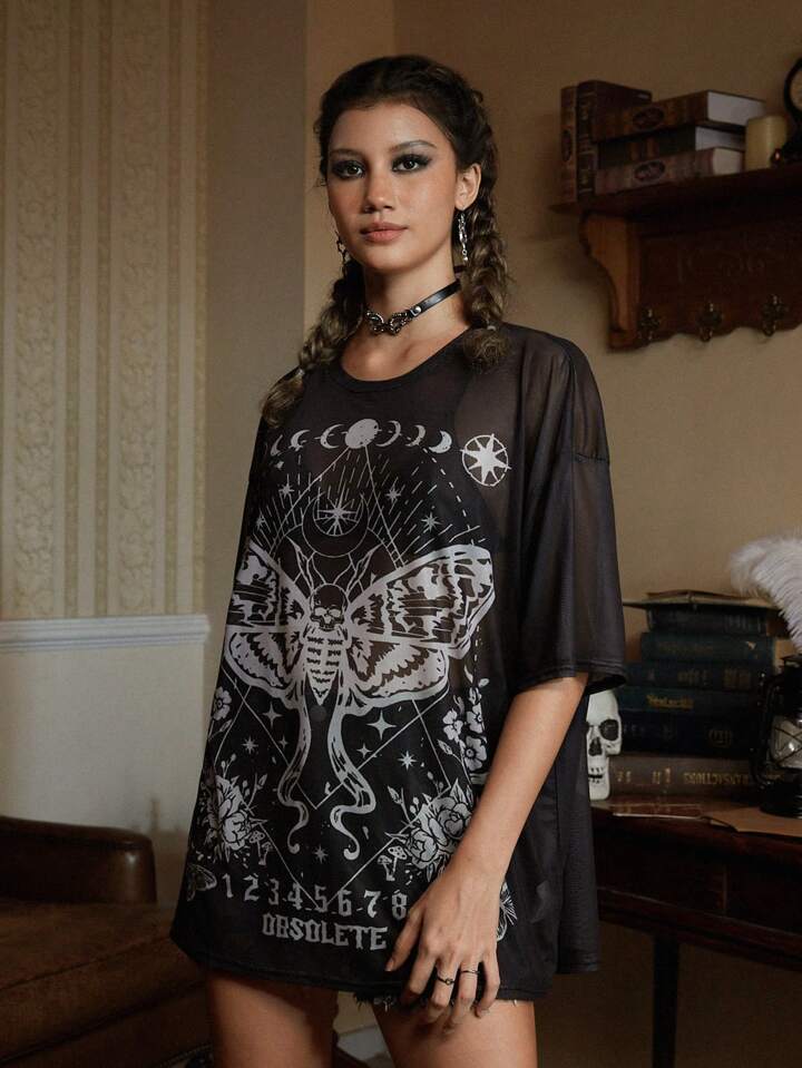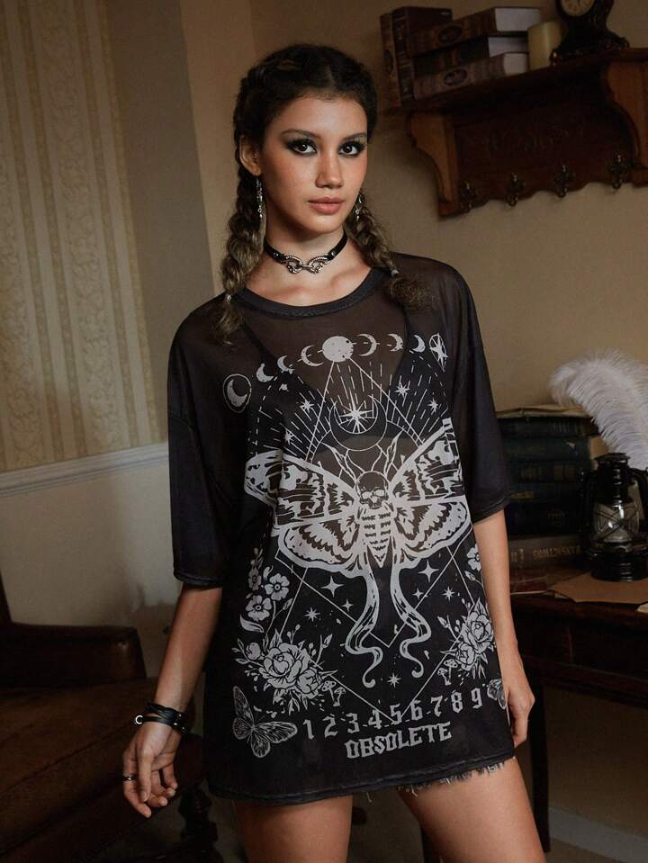 Academia Top Imprimé Papillon Épaule tombante En Tulle