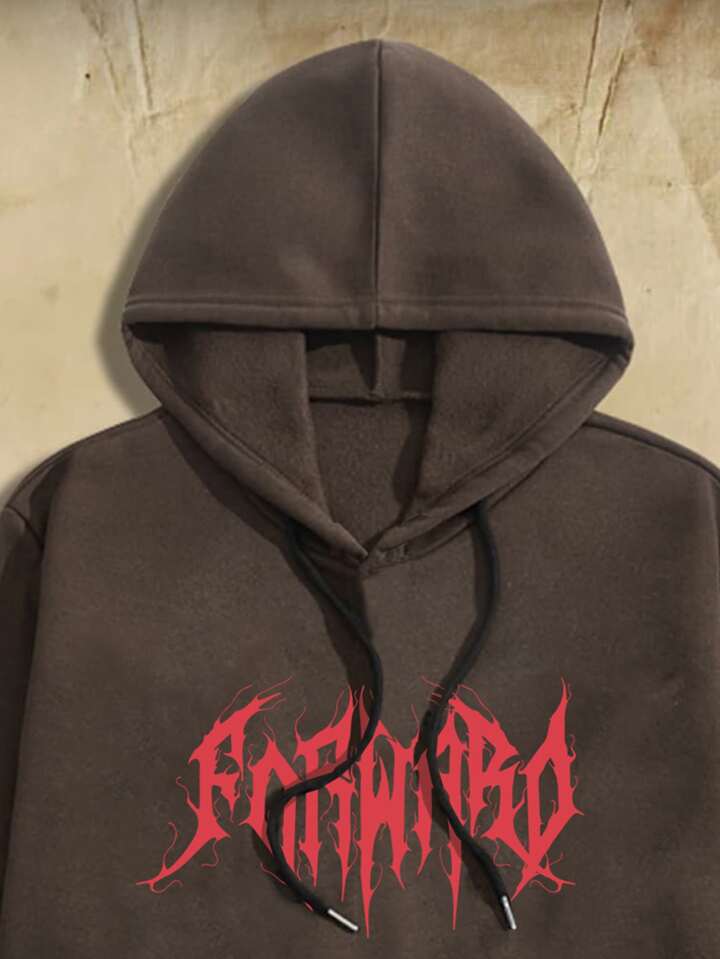 Academia Homme Sweat-shirt à capuche thermique à lettres à poche kangourou à cordon