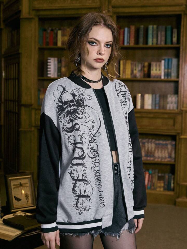 Academia Bomber À Lettres À Ourlet À Rayures Épaule tombante