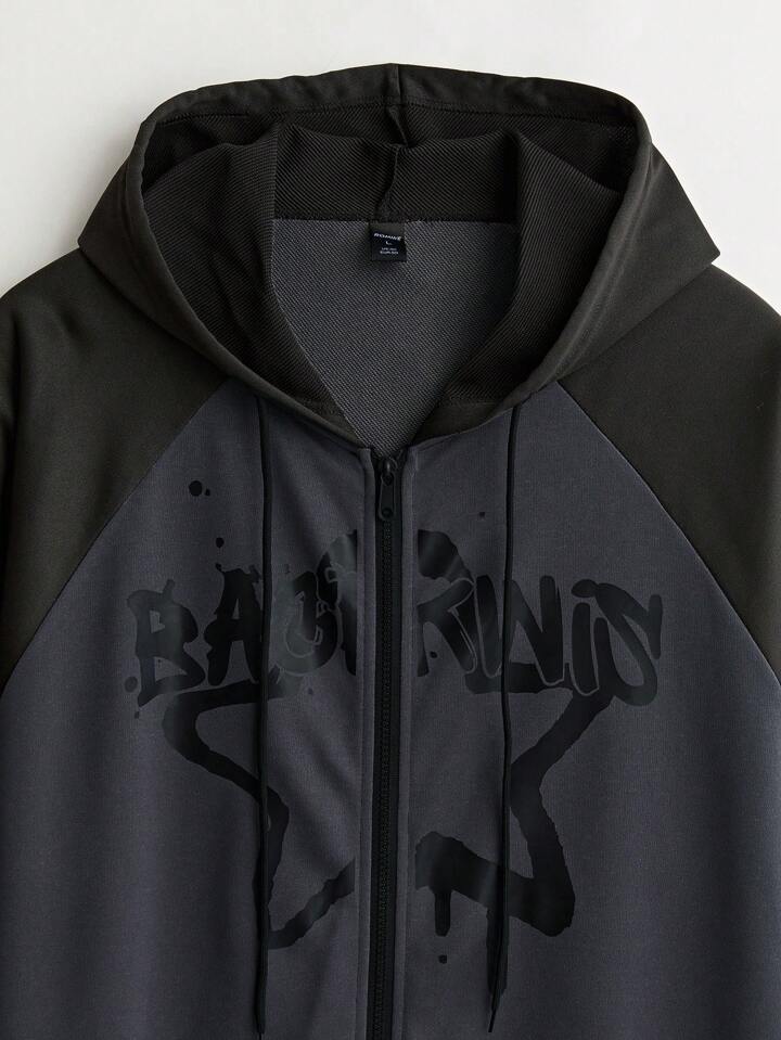 Academia Sweat-shirt à capuche décontracté pour homme avec bloc de couleurs, imprimé d'étoile et de lettres pour le printemps/automne, école