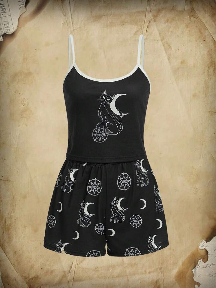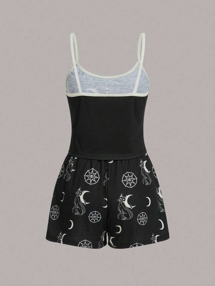 Academia Ensemble De Pyjama Lune & Chat À Liseré Contrastant