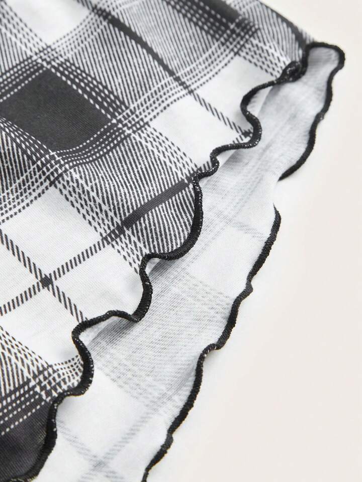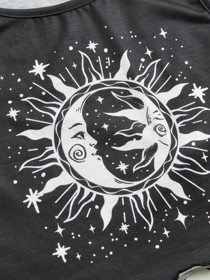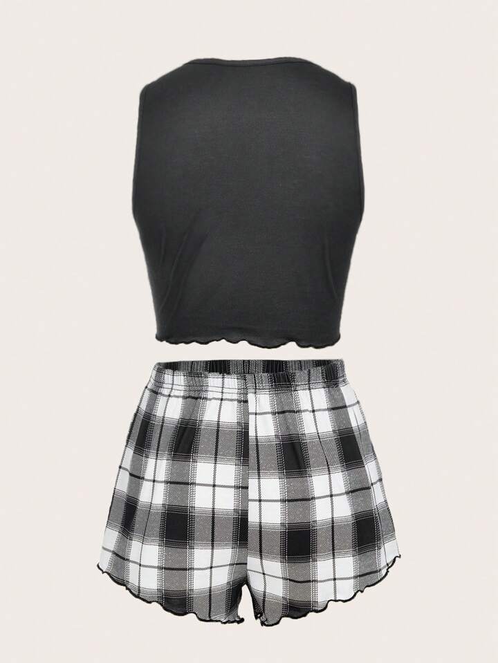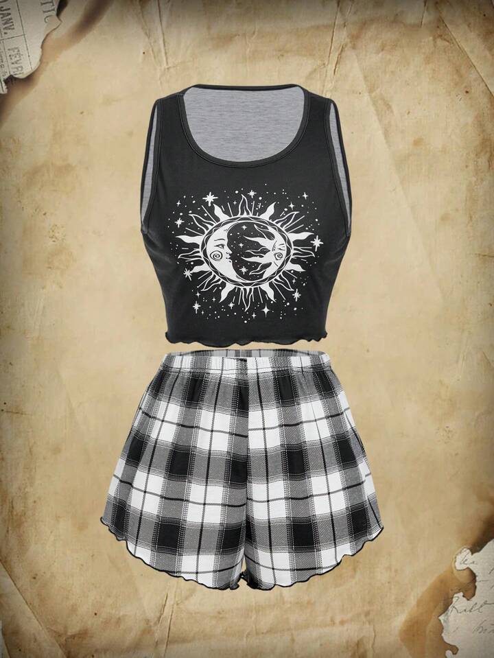 Academia Ensemble De Pyjama Soleil Et Lune À Carreaux À Ourlet Ondulé
