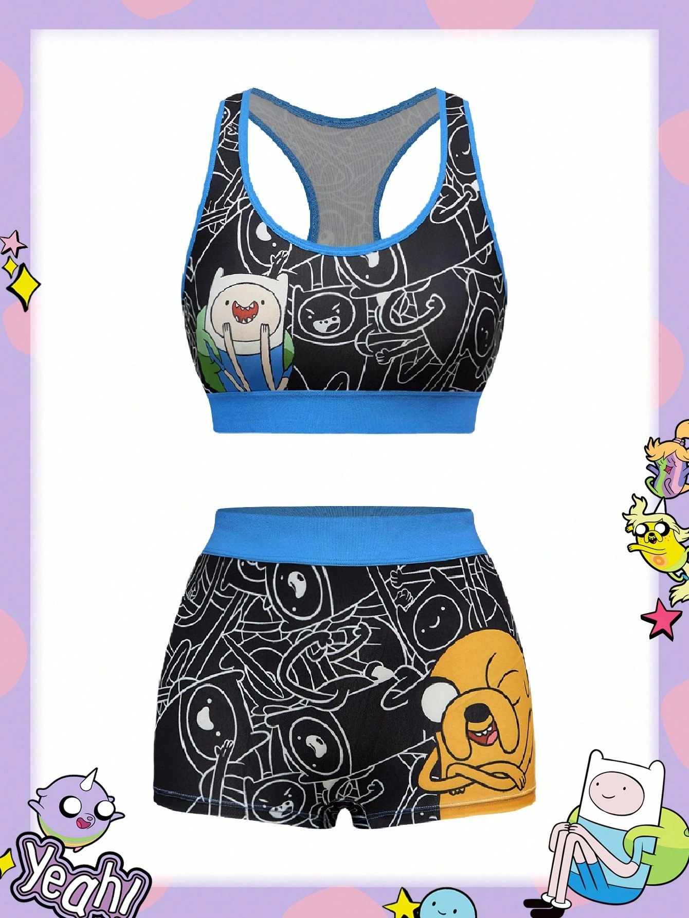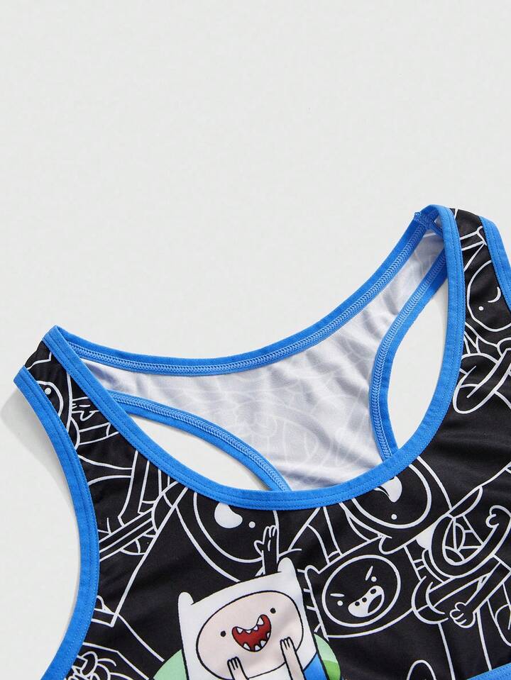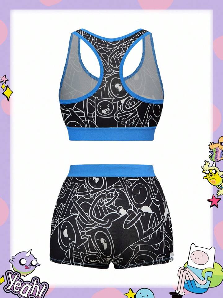 Adventure Time X ROMWE Ensemble soutien-gorge sans fil matelassé en coton décontracté et boxer de sport