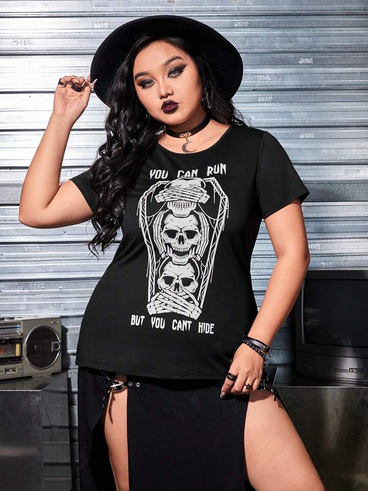 Afdhal Studio T-shirt À Manches Courtes Imprimé Crâne Et Lettres Taille Plus