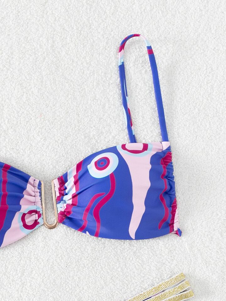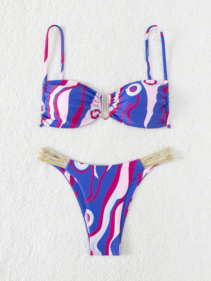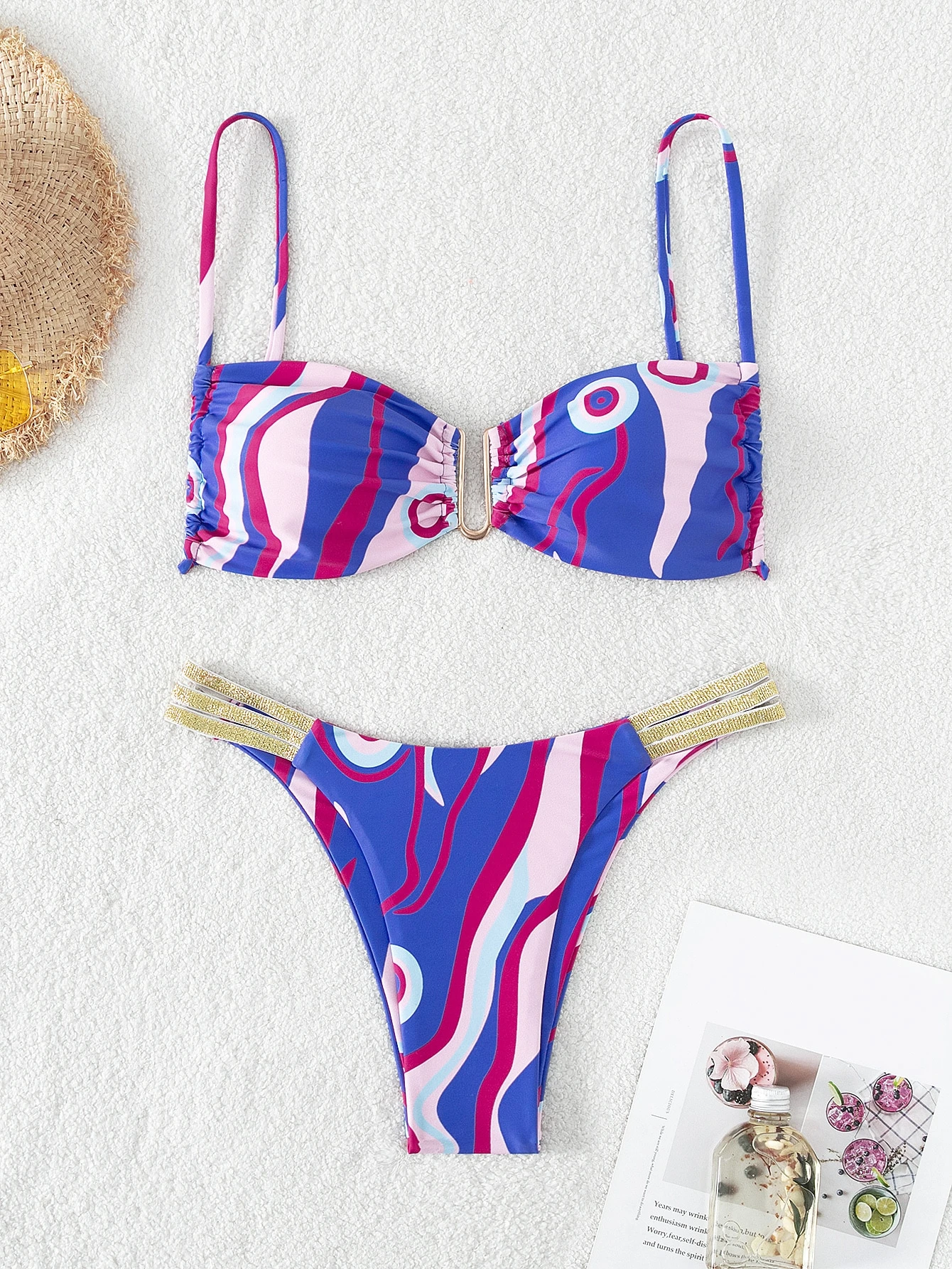 Ensemble de bikini de plage d'été avec imprimé intégral et froncé