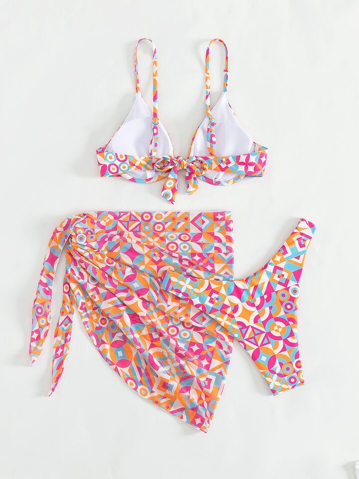 Ensemble bikini d'été sous-fil allover imprimé avec jupe de plage