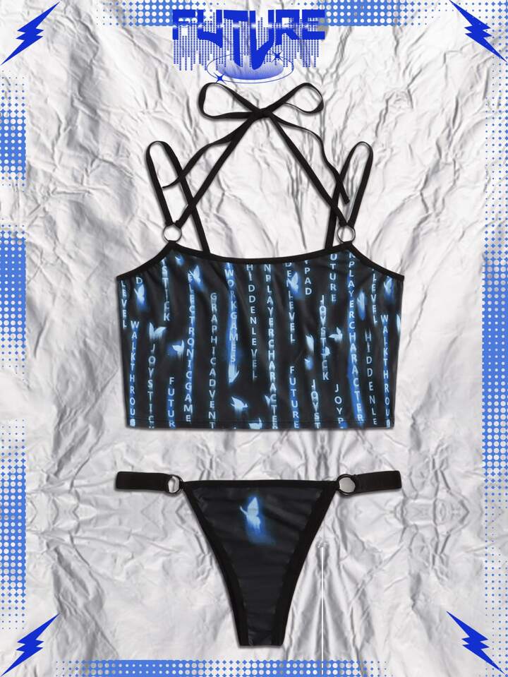 Altspo Ensemble de lingerie à lettres à détail anneau
