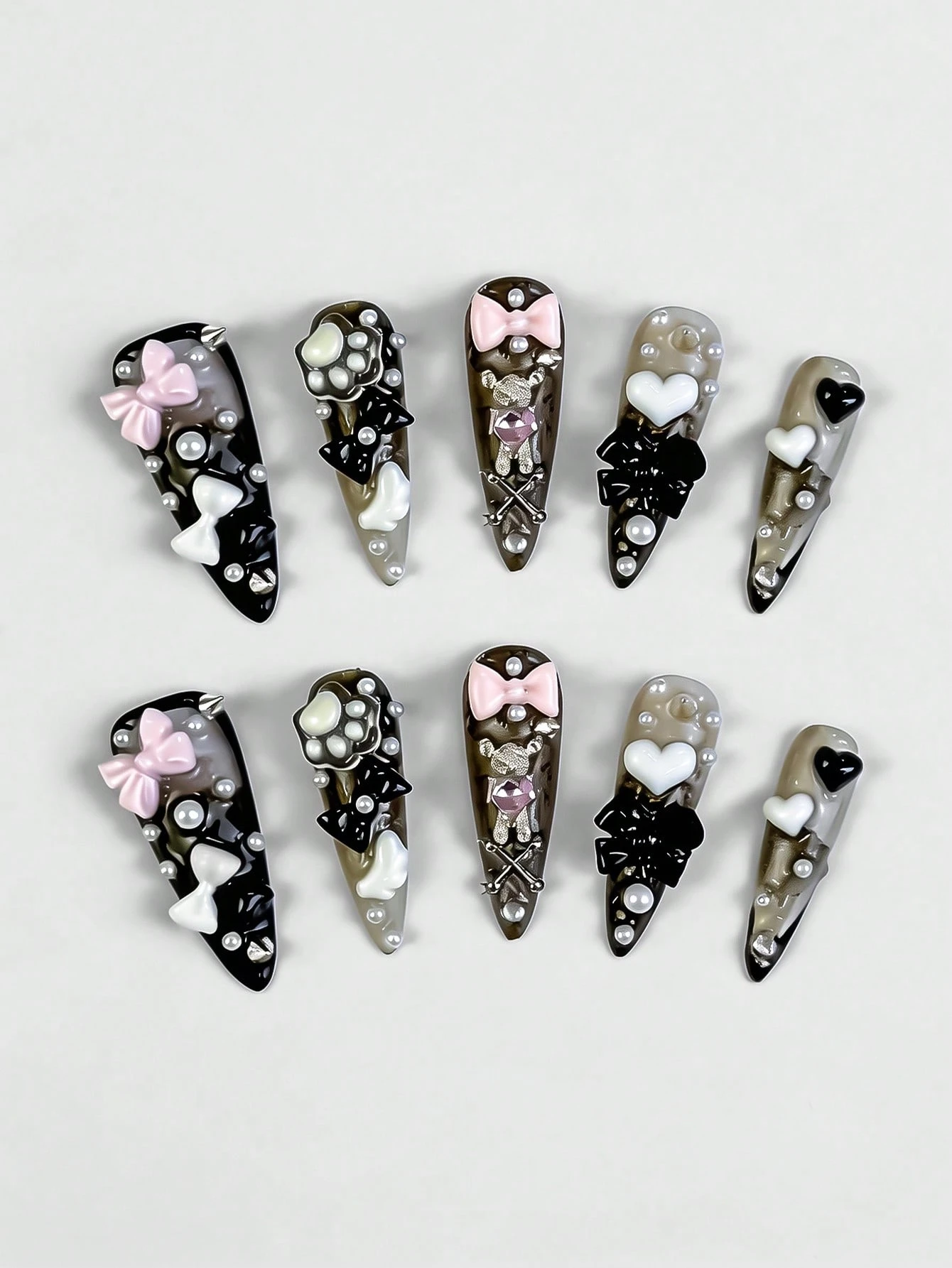 Anime 10 pièces Autocollants d'art pour ongles Y2K mignons en forme de cœur, étoile, nœud, aile avec ruban adhésif