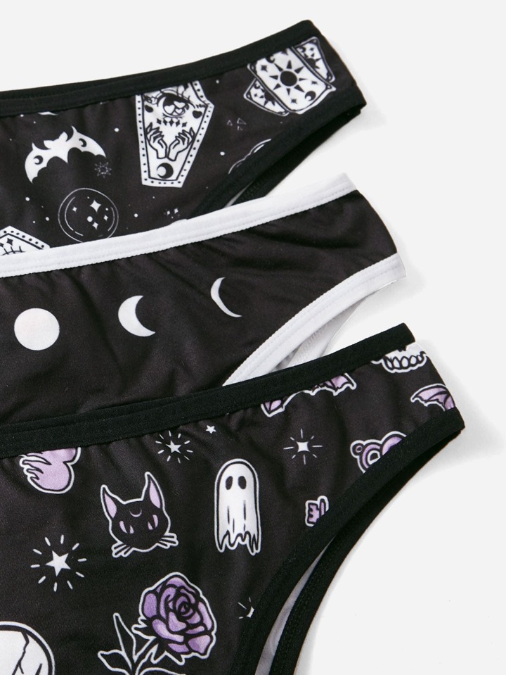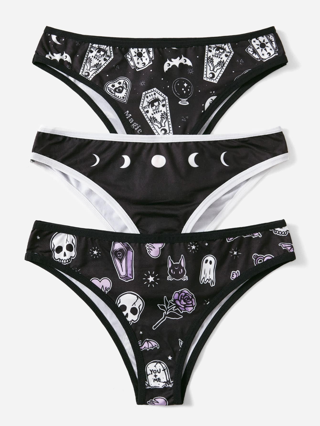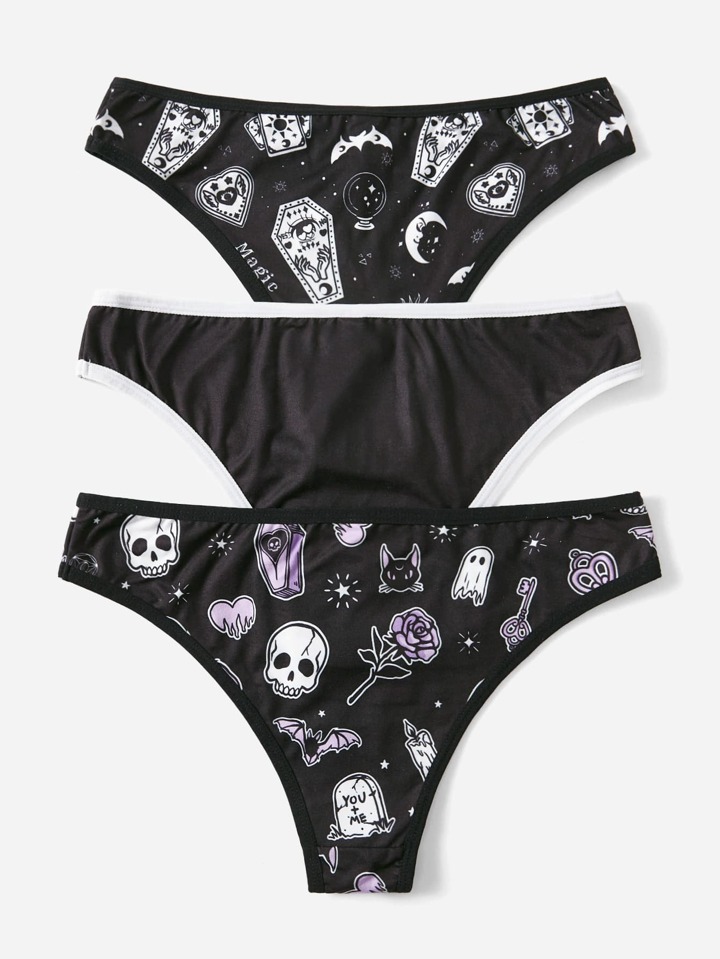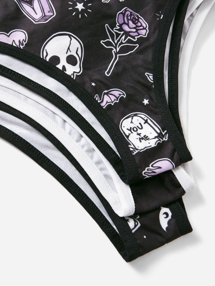 Anime 3 pièces Set de culottes à motif tête de mort et floral à liseré contrastant