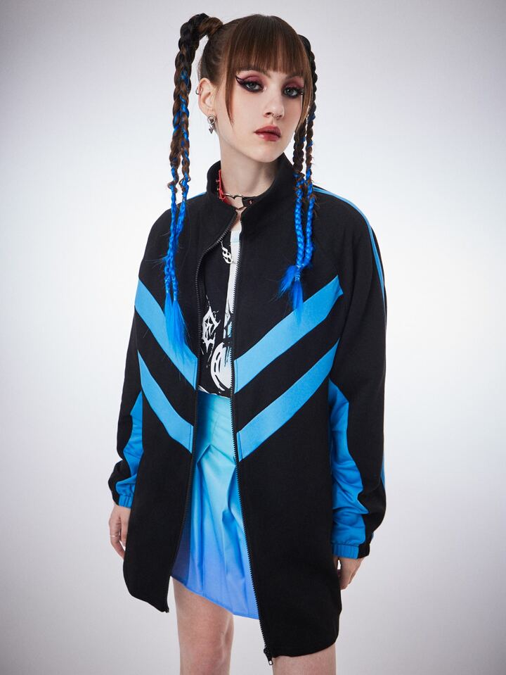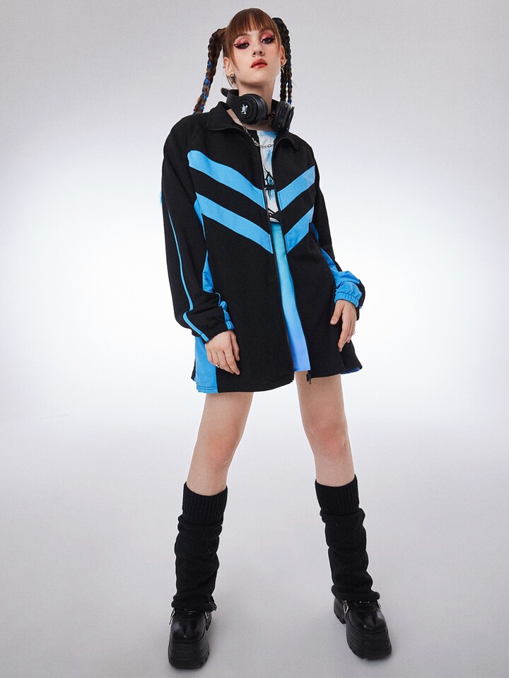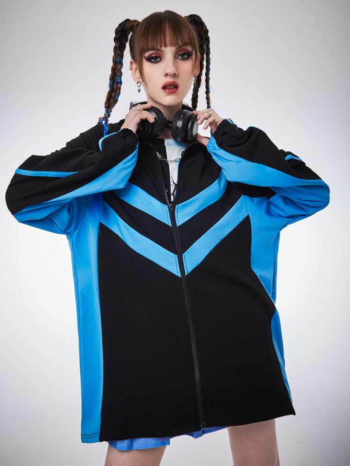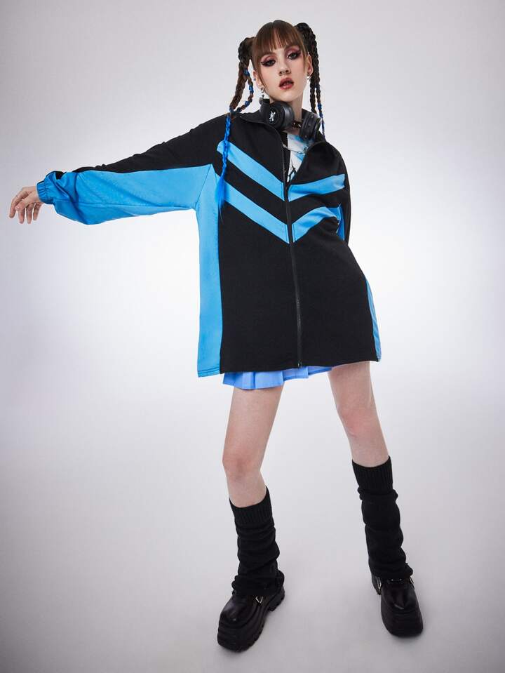Anime Sweat-shirts pour femmes Fermeture éclair Casual Chevron Blocs de couleur
