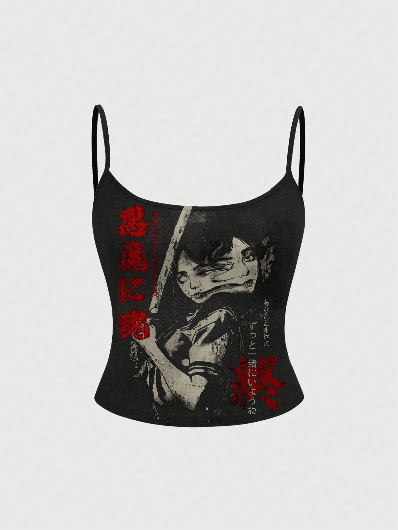 Anime Débardeur et débardeur vintage noir basique ample à col asymétrique japonais sexy et sombre. Convient pour le port de rue en été, grandes tailles