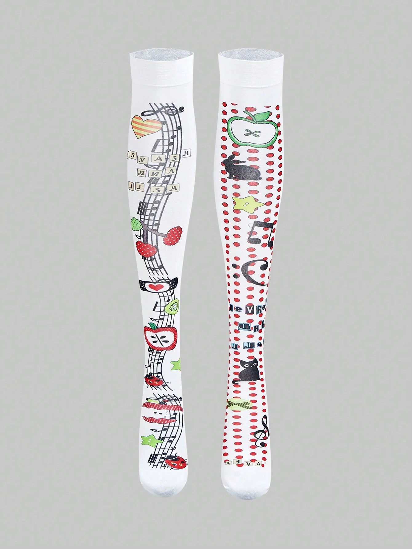 Anime Chaussettes hautes amusantes avec symboles musicaux et imprimés animaux - Chaussettes mode ado Y2K au style esthétique mignon à pois
