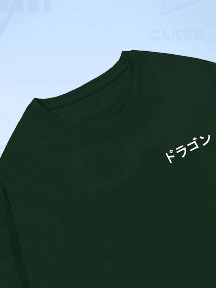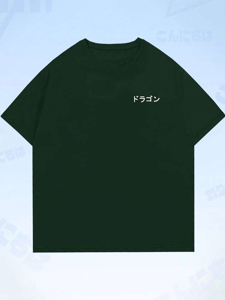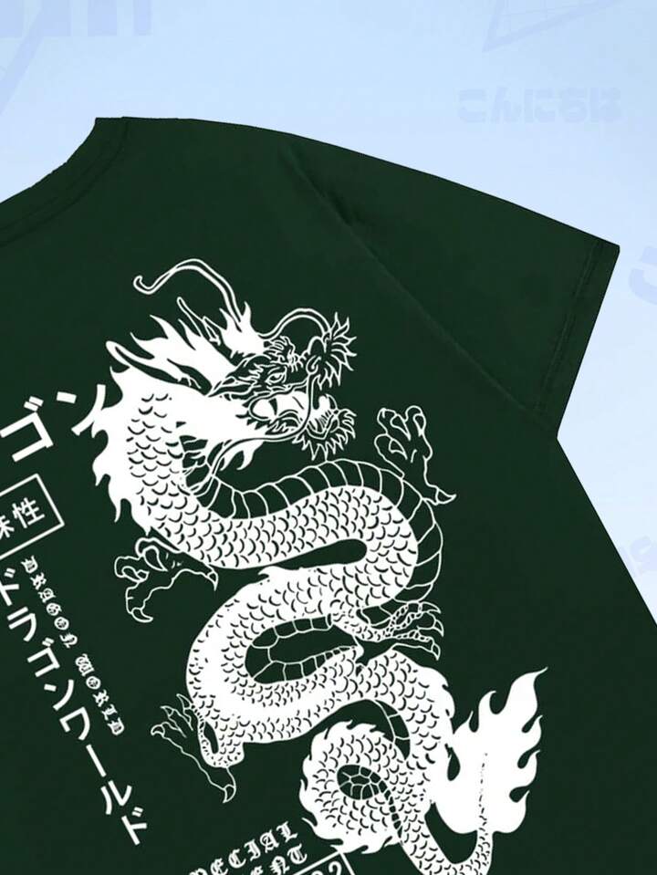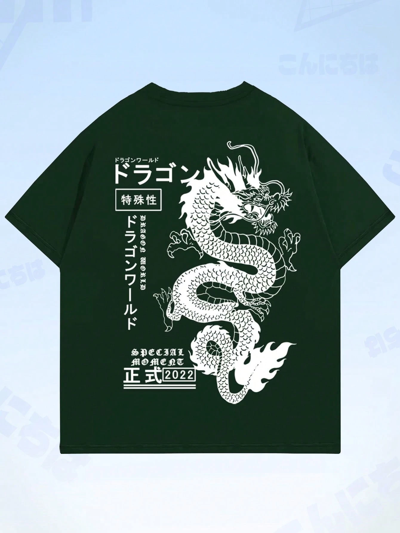 Anime Homme T-shirt à motif dragon et lettre japonaise