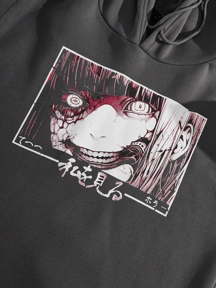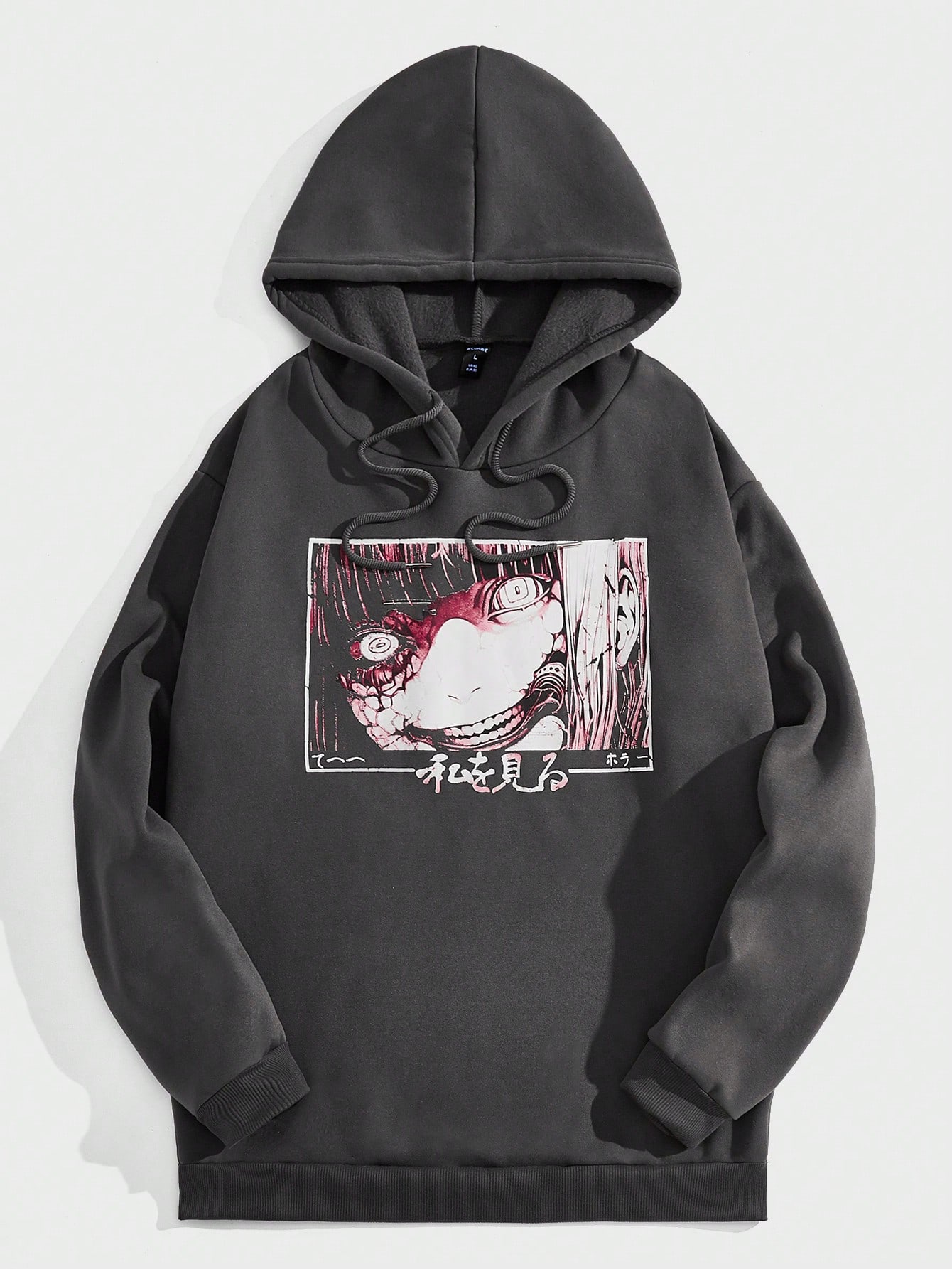 Anime Homme Sweat-Shirt À Capuche Figure Et Lettre À Cordon