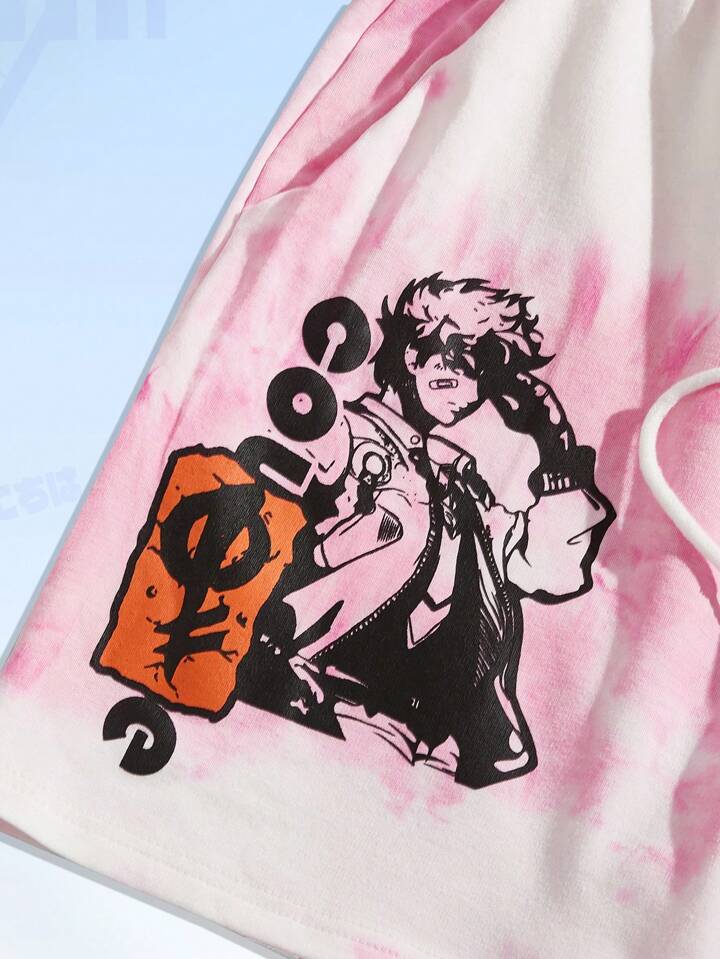 Anime Homme Short tie dye Lettre Et Figure À Cordon