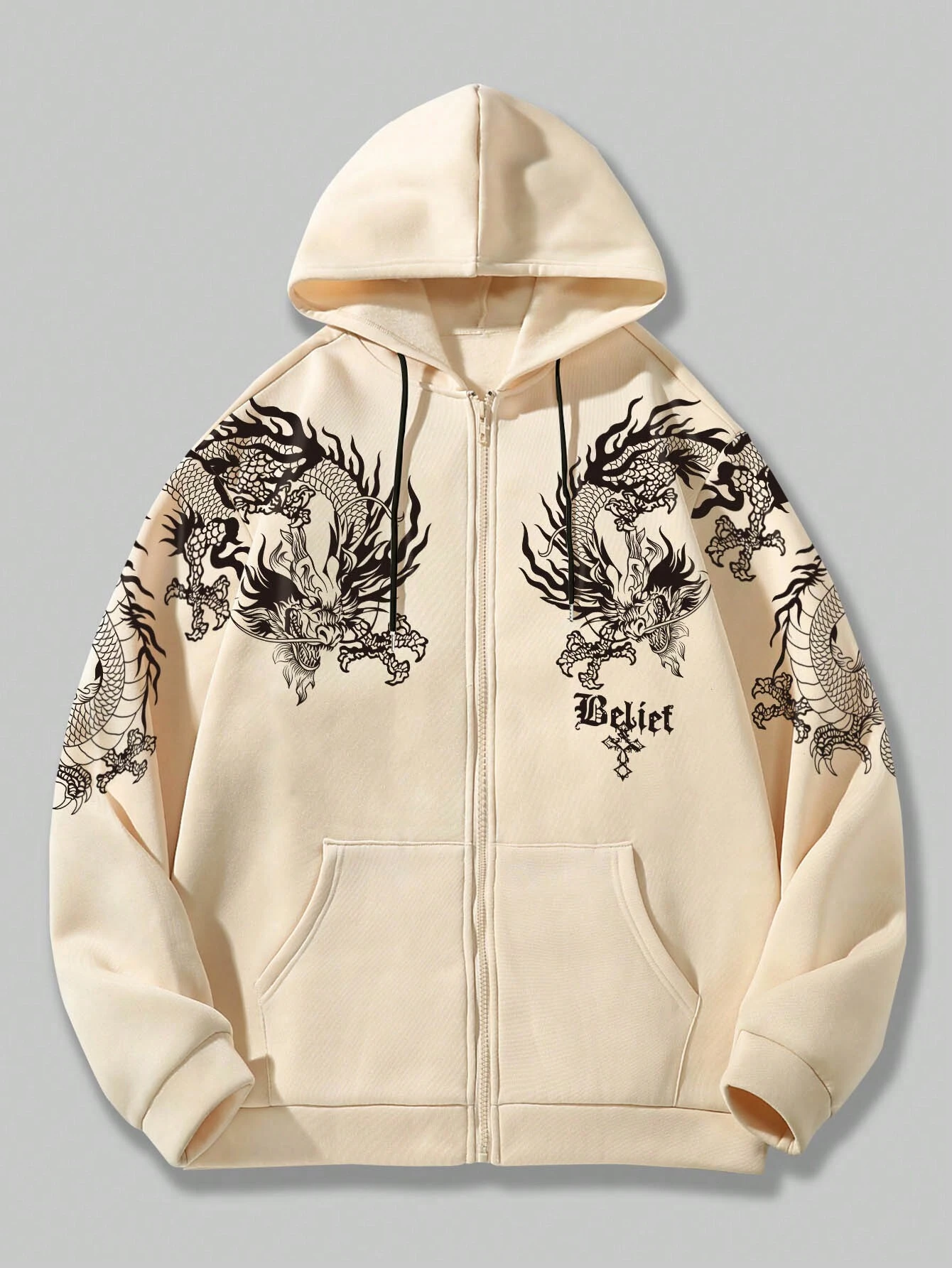 Anime Sweat-shirt À Capuche Pour Hommes À Motif De Dragon Avec Cordon Et Fermeture À Glissière, Décontracté