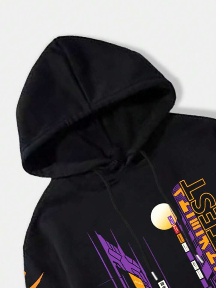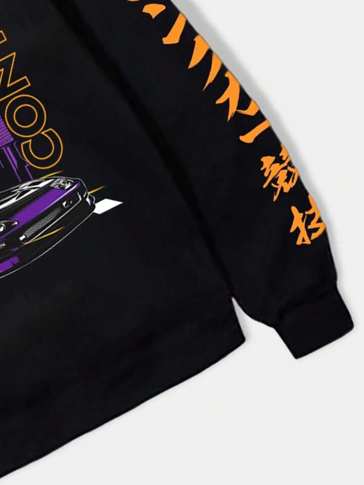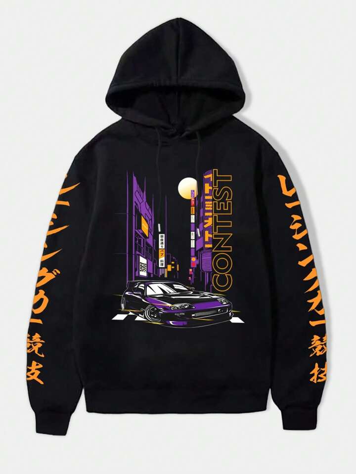 Anime Sweat-shirt À Capuche À Cordon De Serrage Graphique En Voiture Avec Lettre Pour Homme
