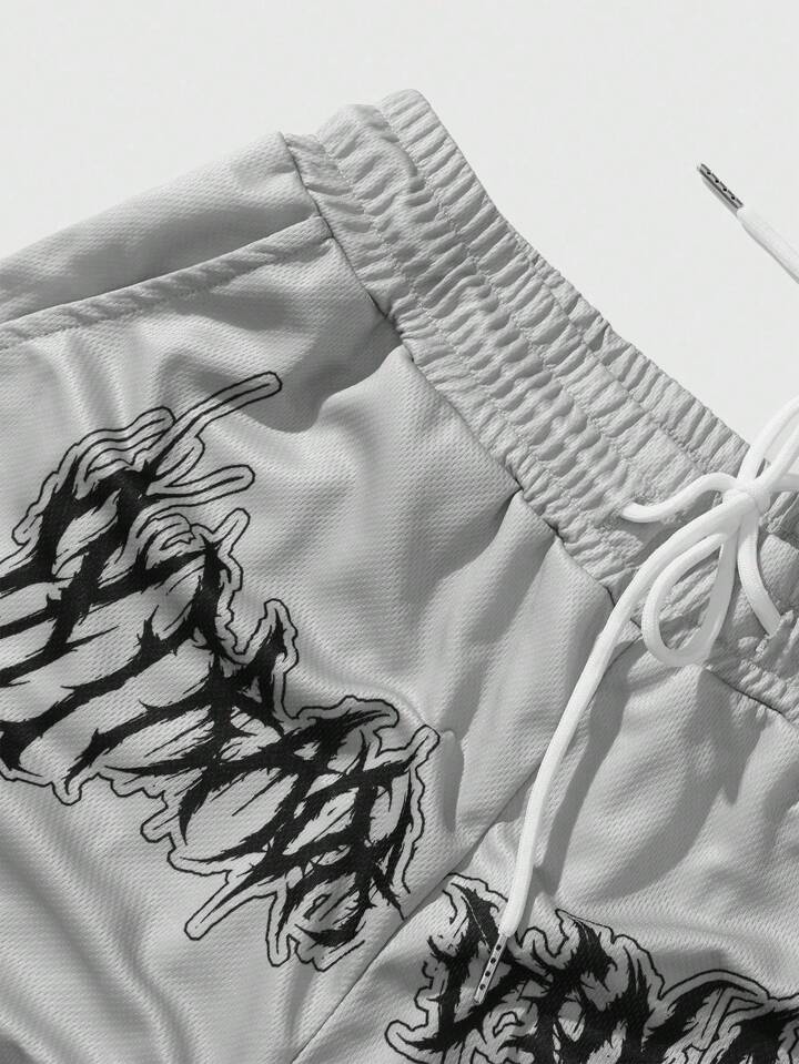 Anime Short de basket en maille à cordon de serrage avec imprimé lettres, école