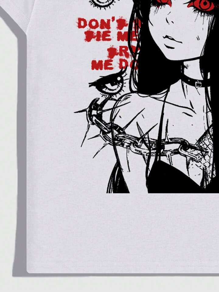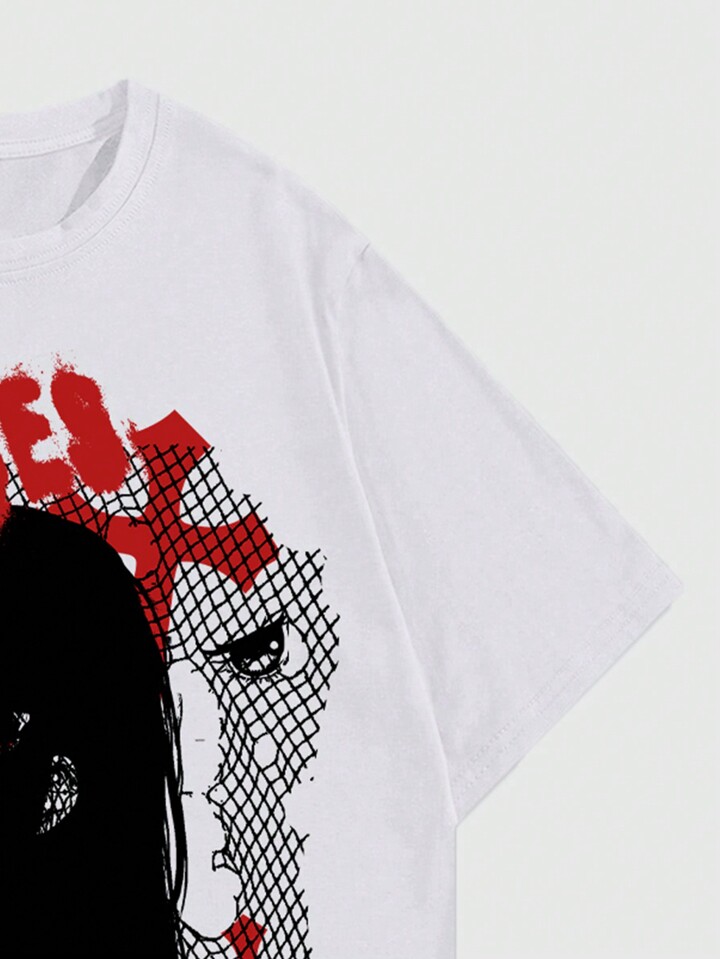 Anime T-shirt à manches courtes pour hommes avec impression de code, de personnage et de slogan, été