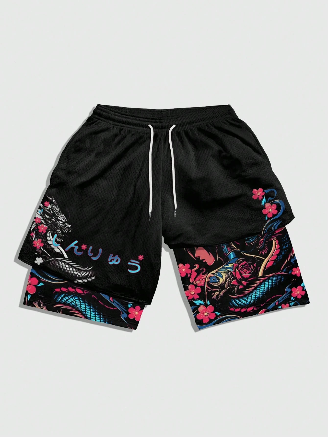 Anime Short décontracté pour hommes 2 en 1 avec imprimé et cordon de serrage