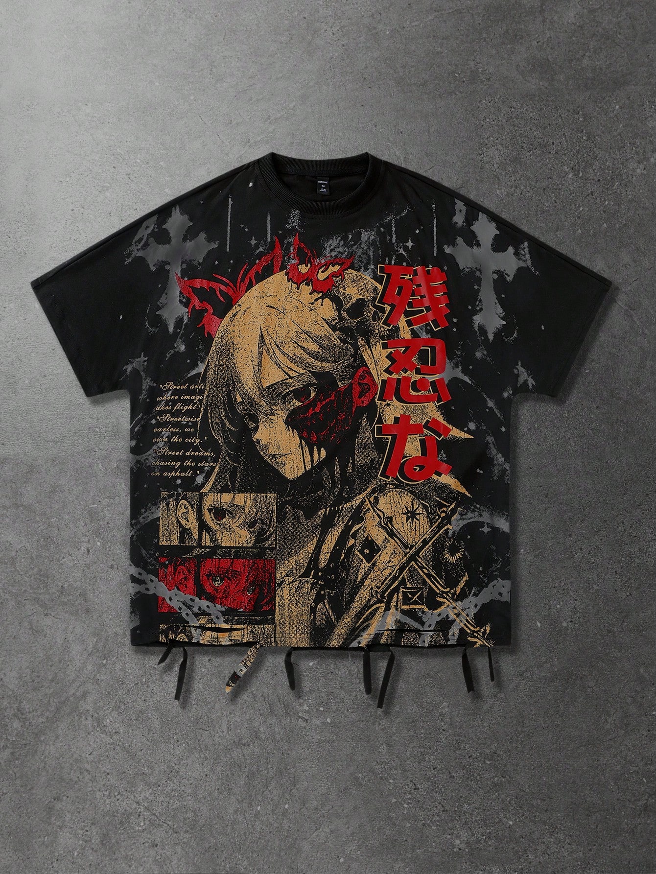 Anime T-shirt à manches courtes col rond avec graphique de fille de bande dessinée, polyvalent pour les vacances et les déplacements