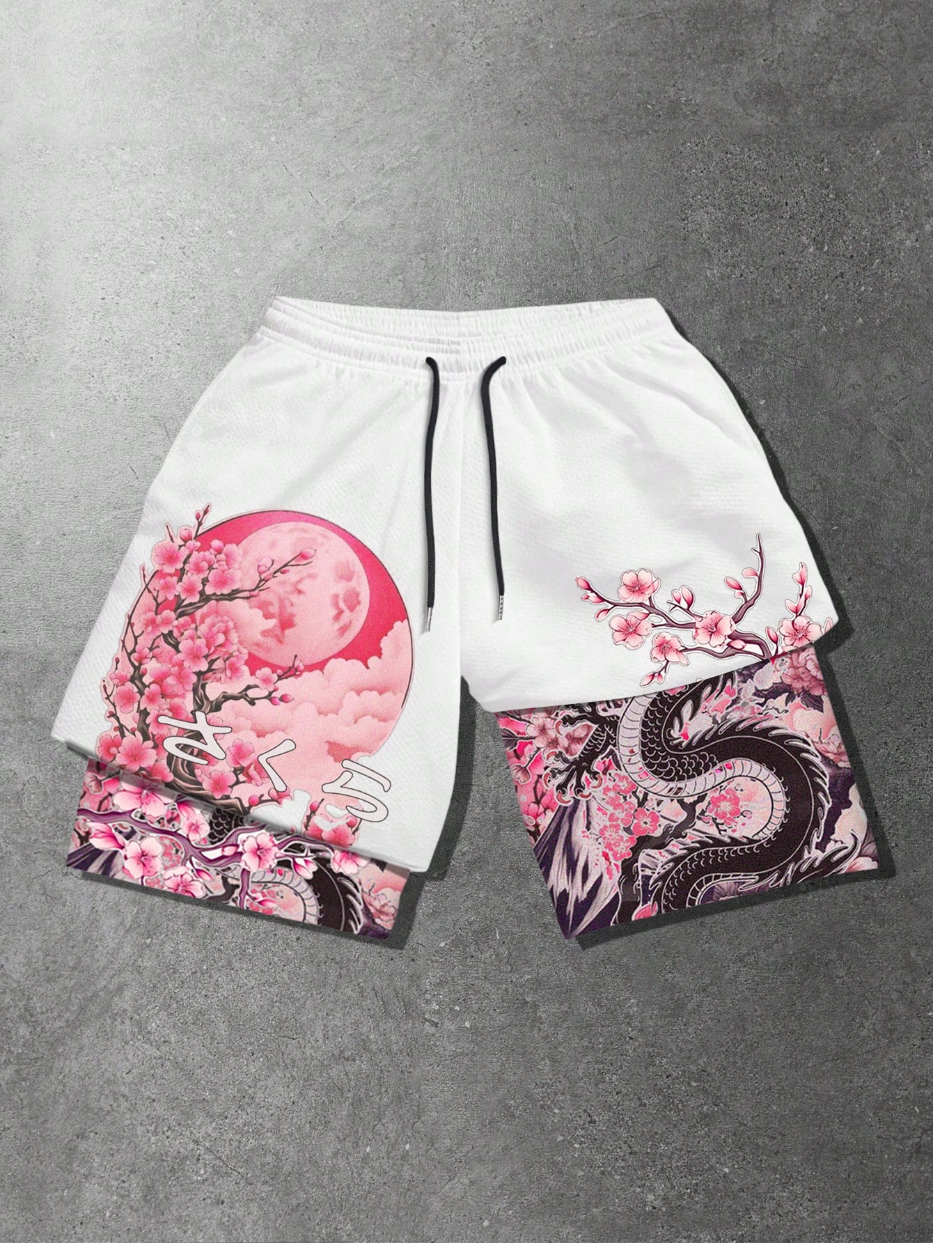 Anime Short à taille coulissante avec imprimé dragon chinois et double couche pour hommes