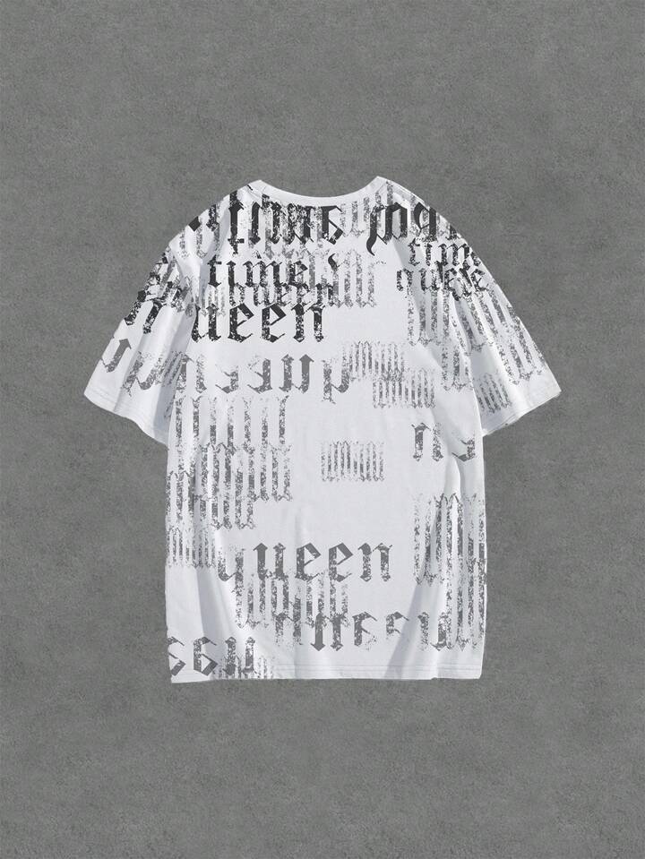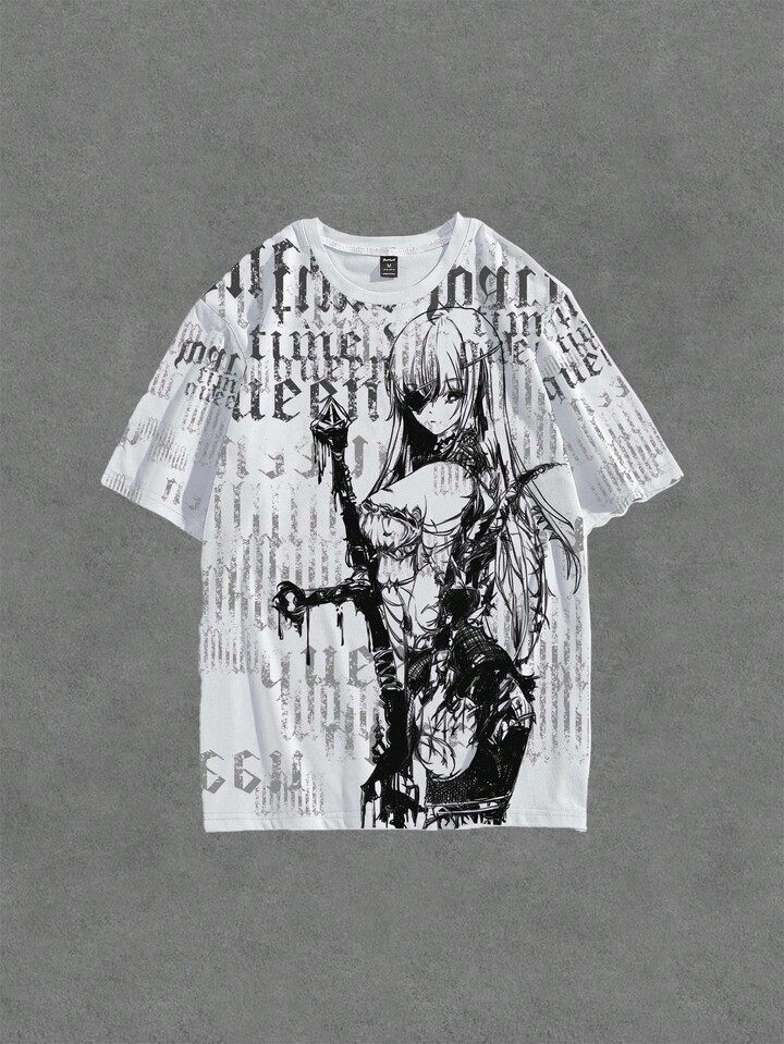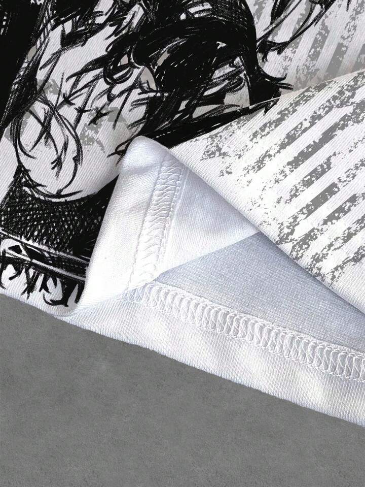 Anime T-shirt à imprimé de personnage de dessin animé et de lettre pour hommes, mode d'été