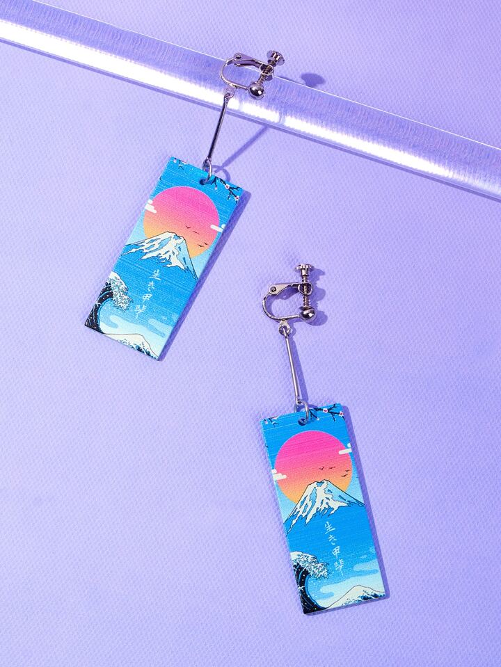 Anime Pendants d'oreilles géométriques montagne et lettre japonaise