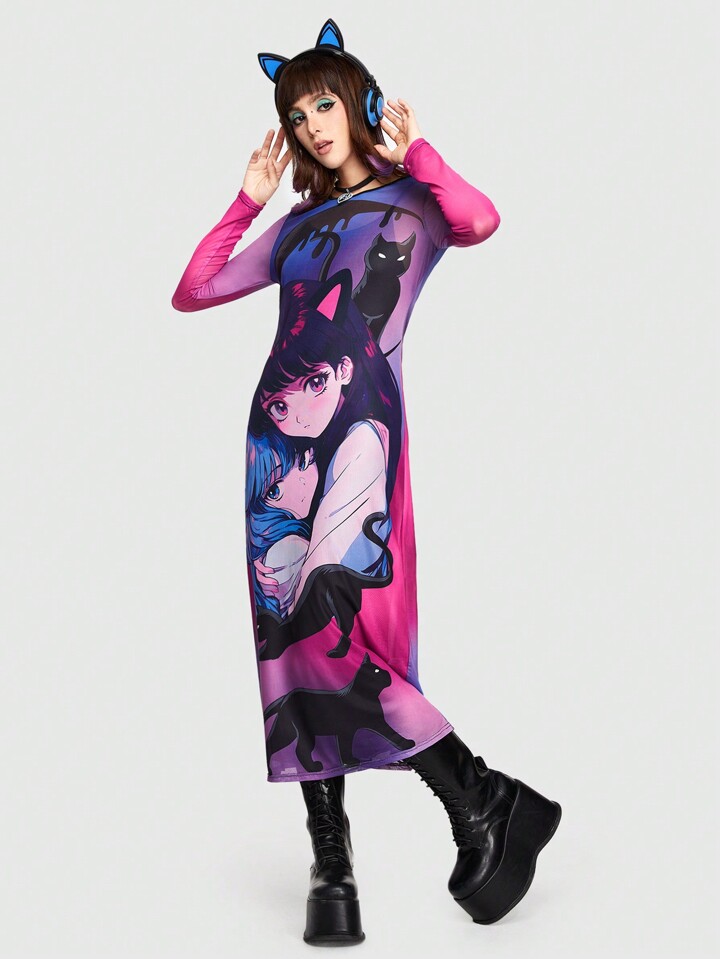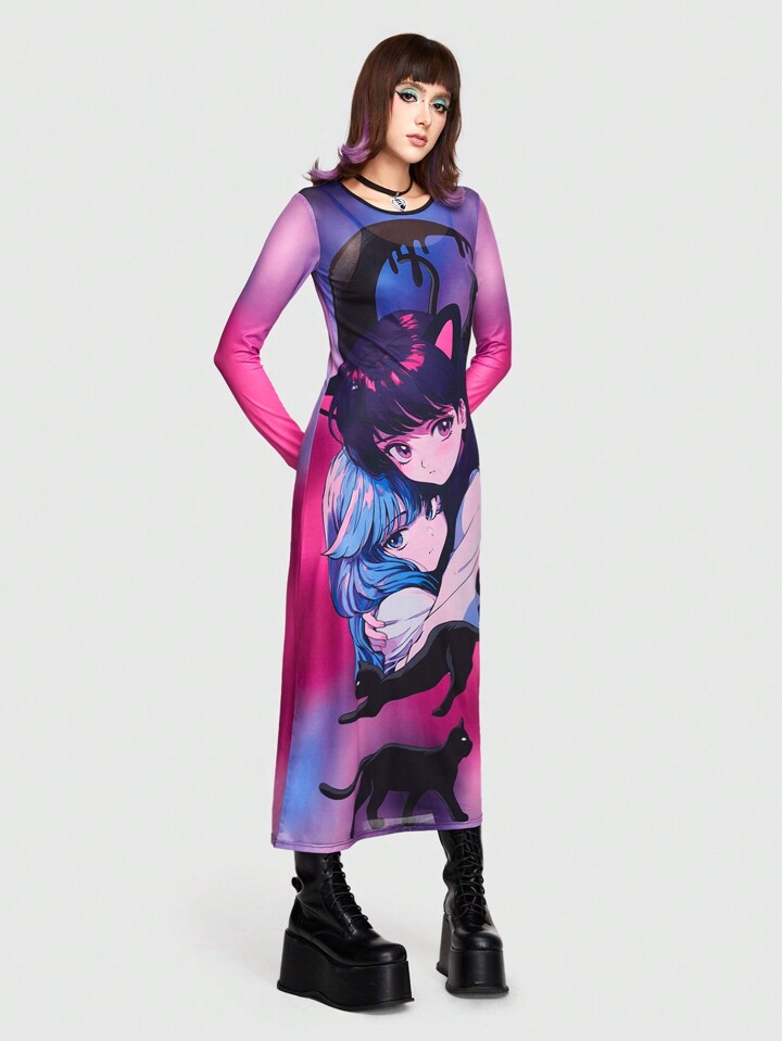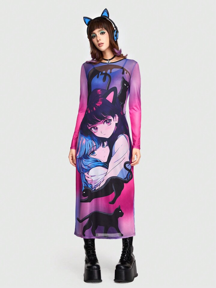 Anime Robe Femme Dégradé Irisé Vintage Animé Sexy