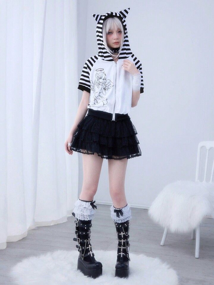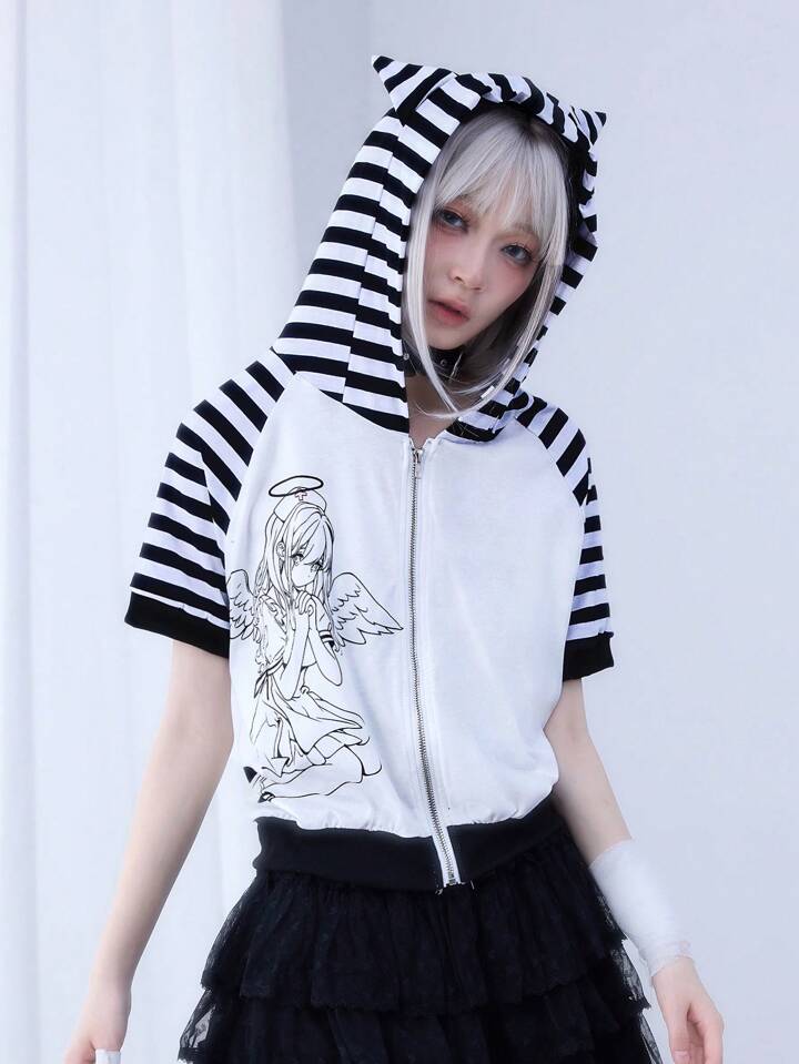 Anime sweat-shirt à capuche décontracté et mignon avec oreilles de chat pour femmes