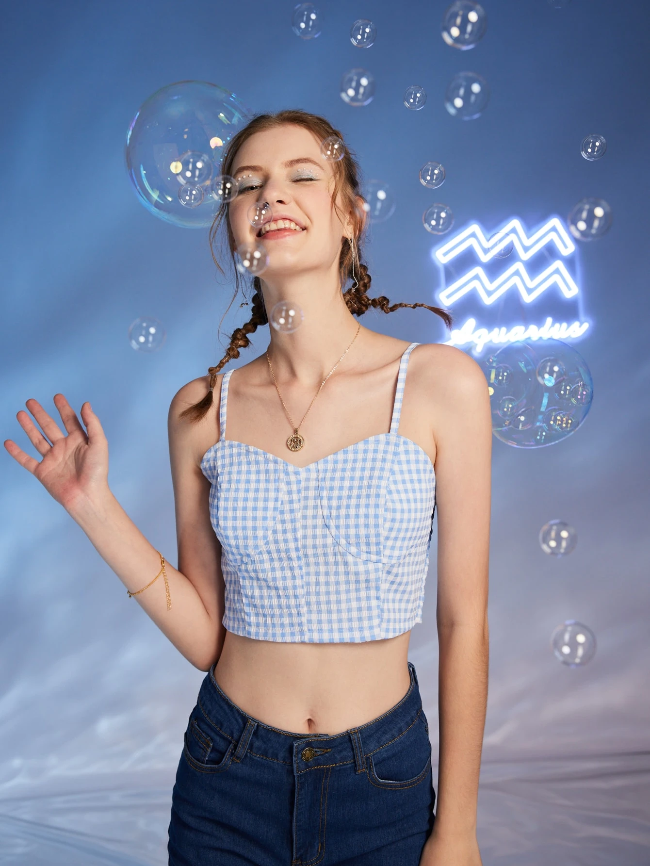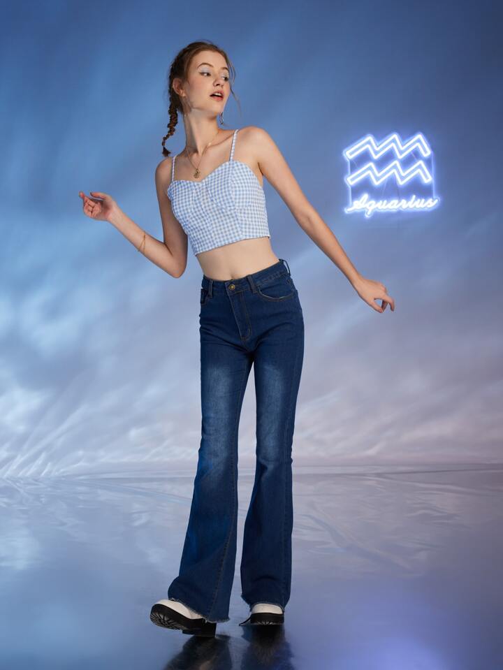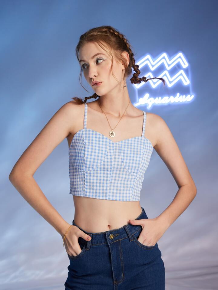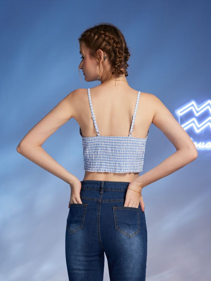 Top à fines brides court Verseau en vichy froncé