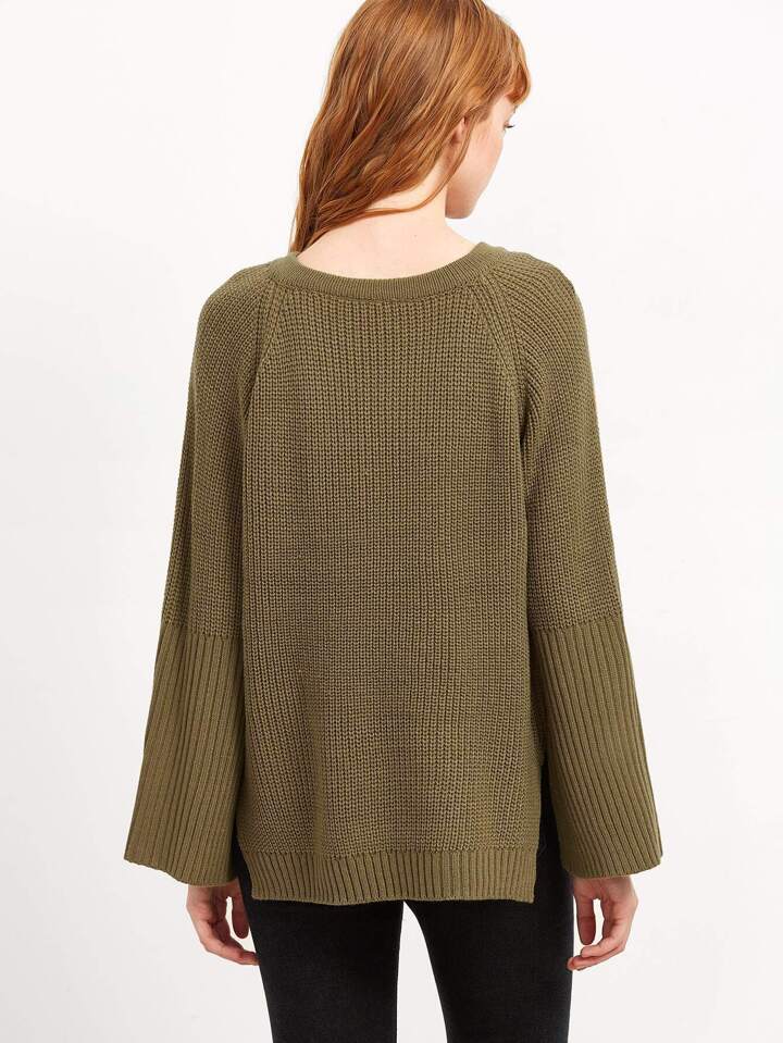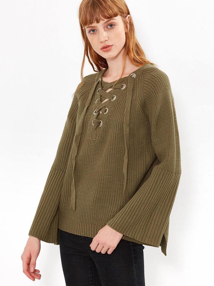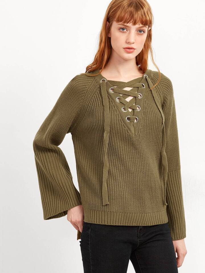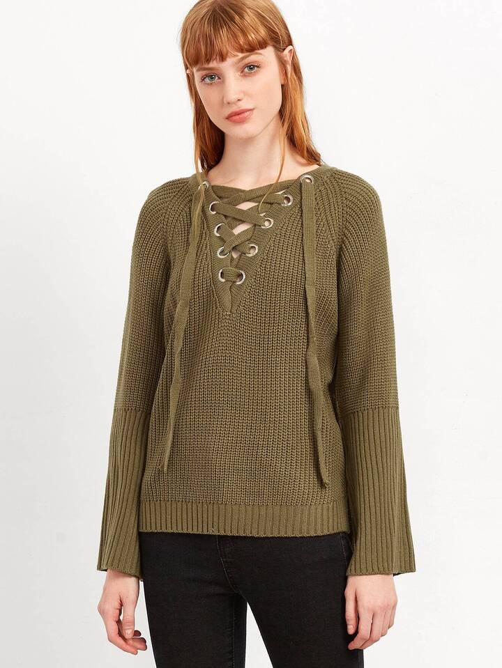 Pull en œillet avez lacet - vert foncé