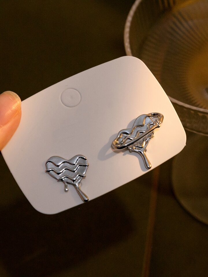 Boucles d'oreilles à pique asymétriques en forme de cœur