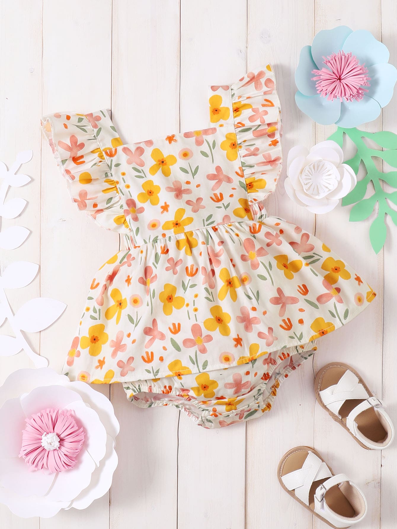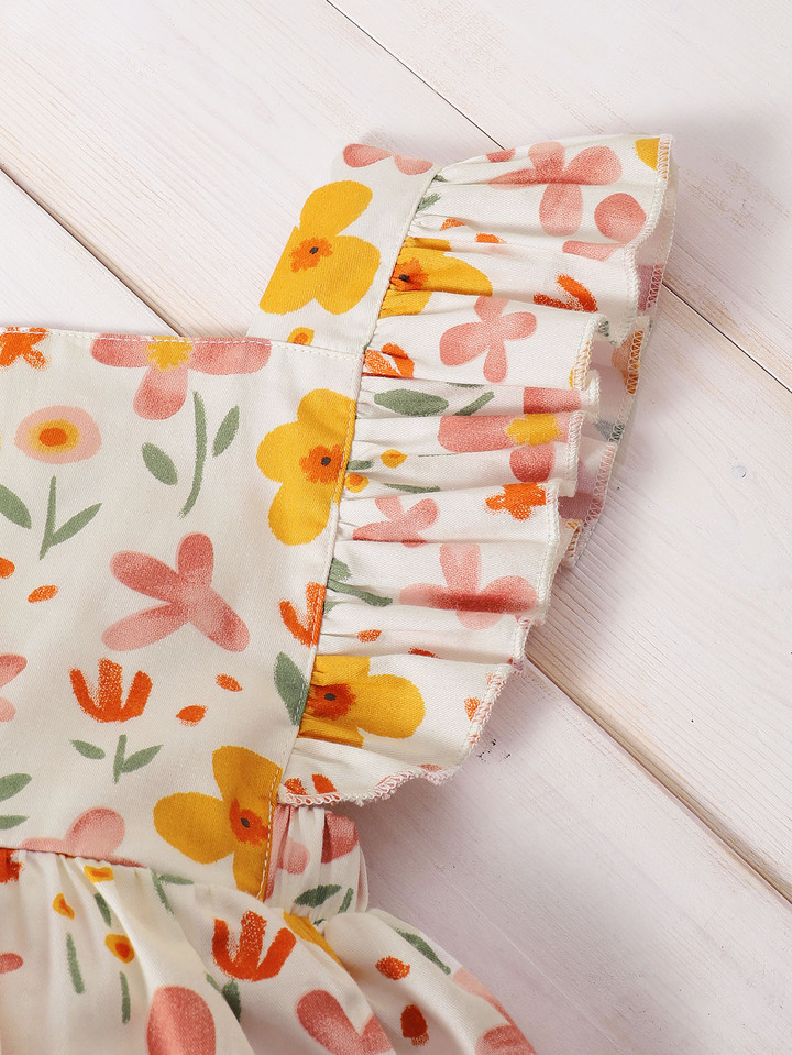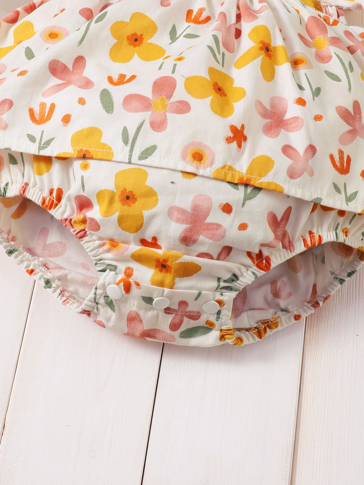 Bébé fille Robe 2 en 1 à imprimé fleuri à volants