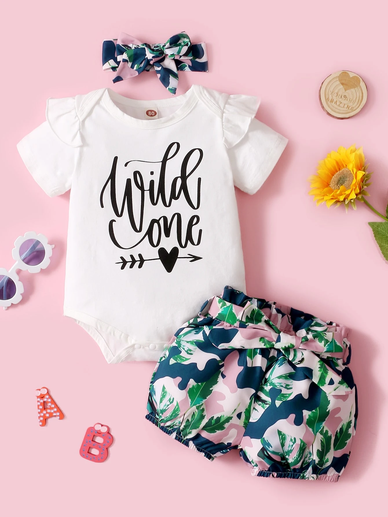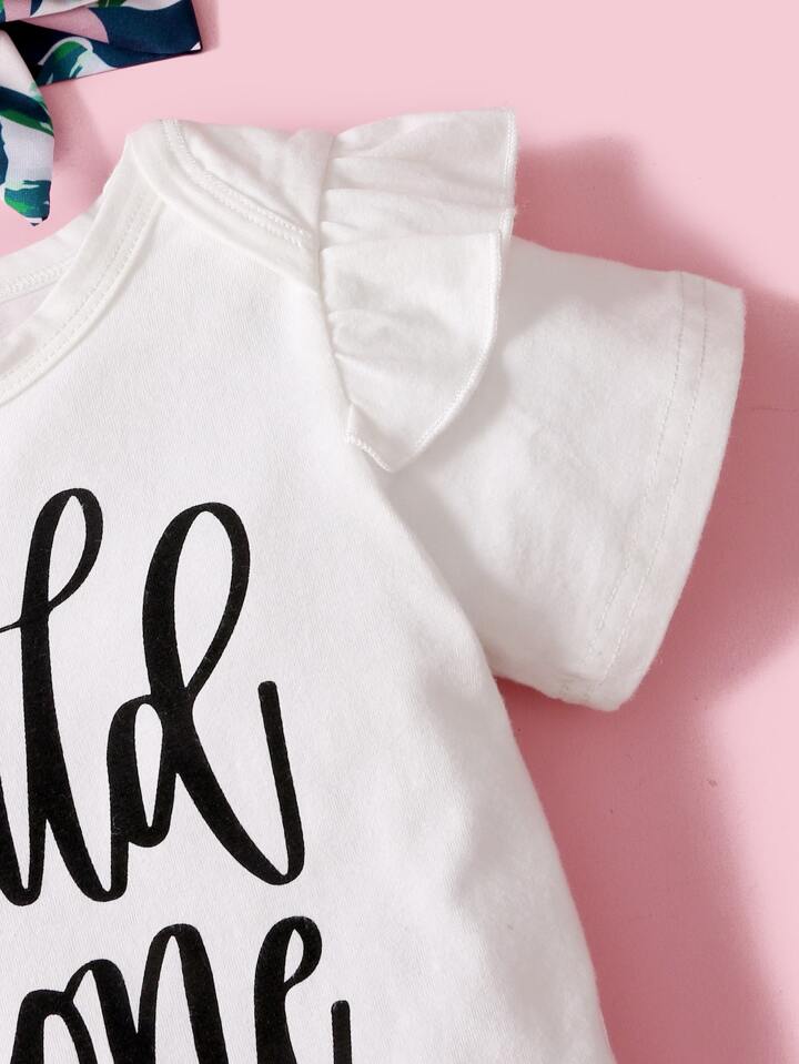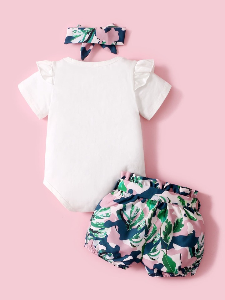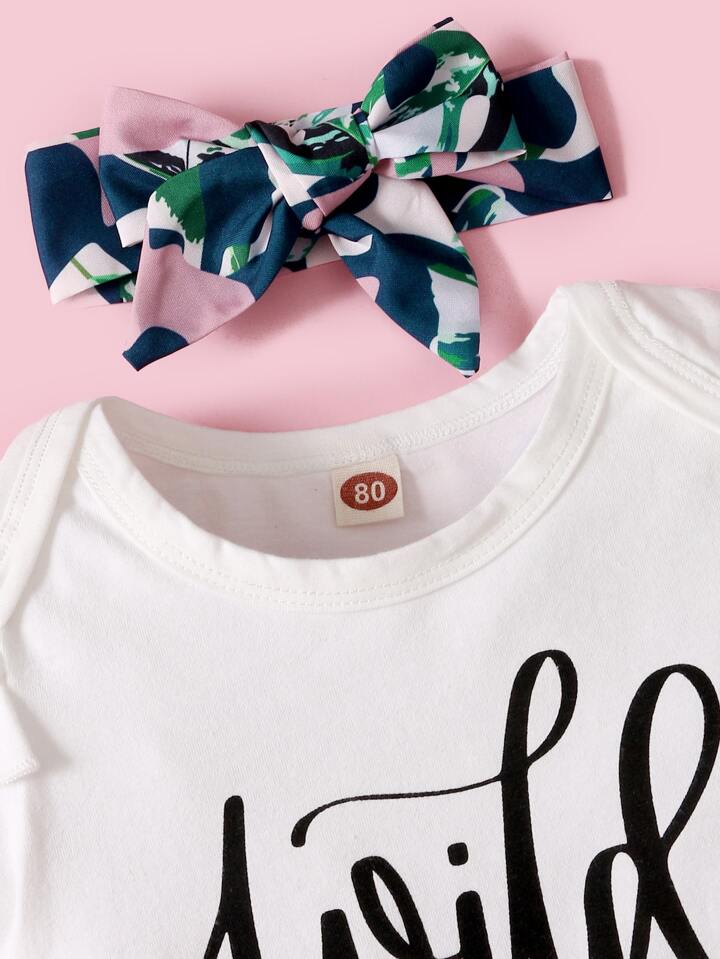 Bébé fille Body à lettres & Short ceinturé & Bandeau