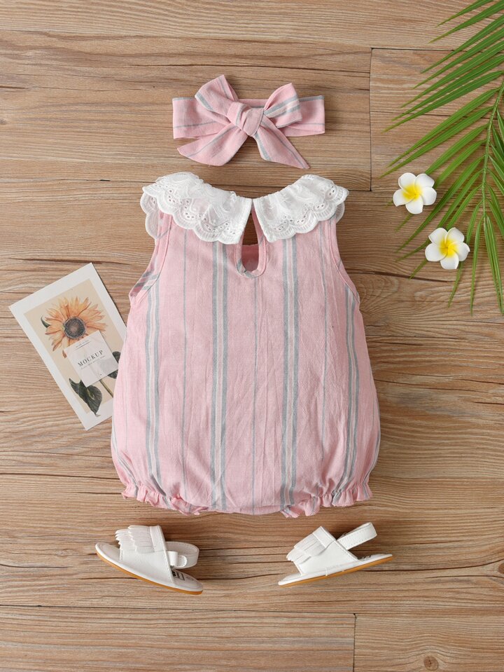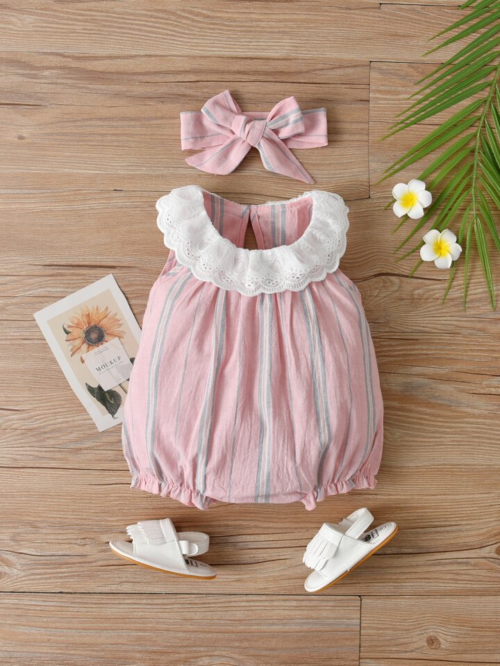 Bébé fille Body à rayures en dentelle & Bandeau