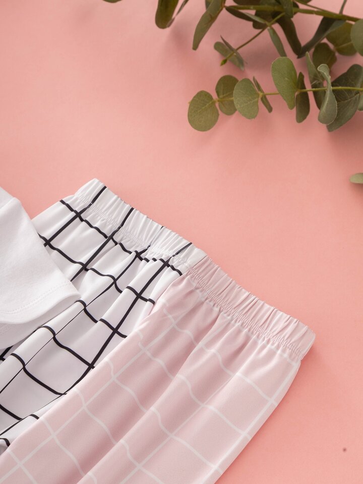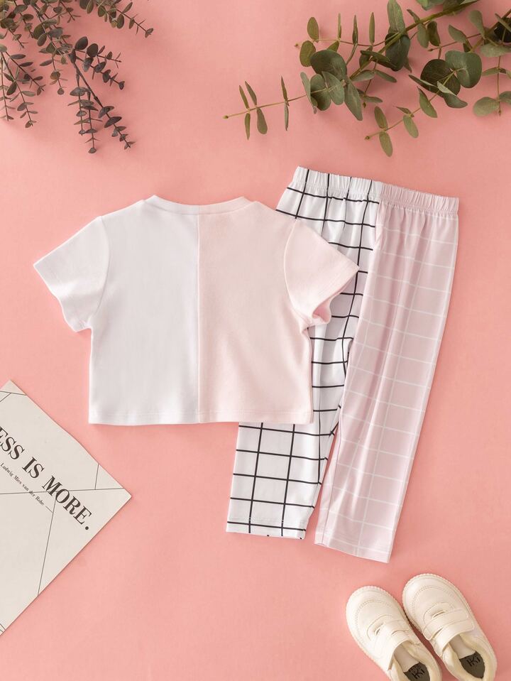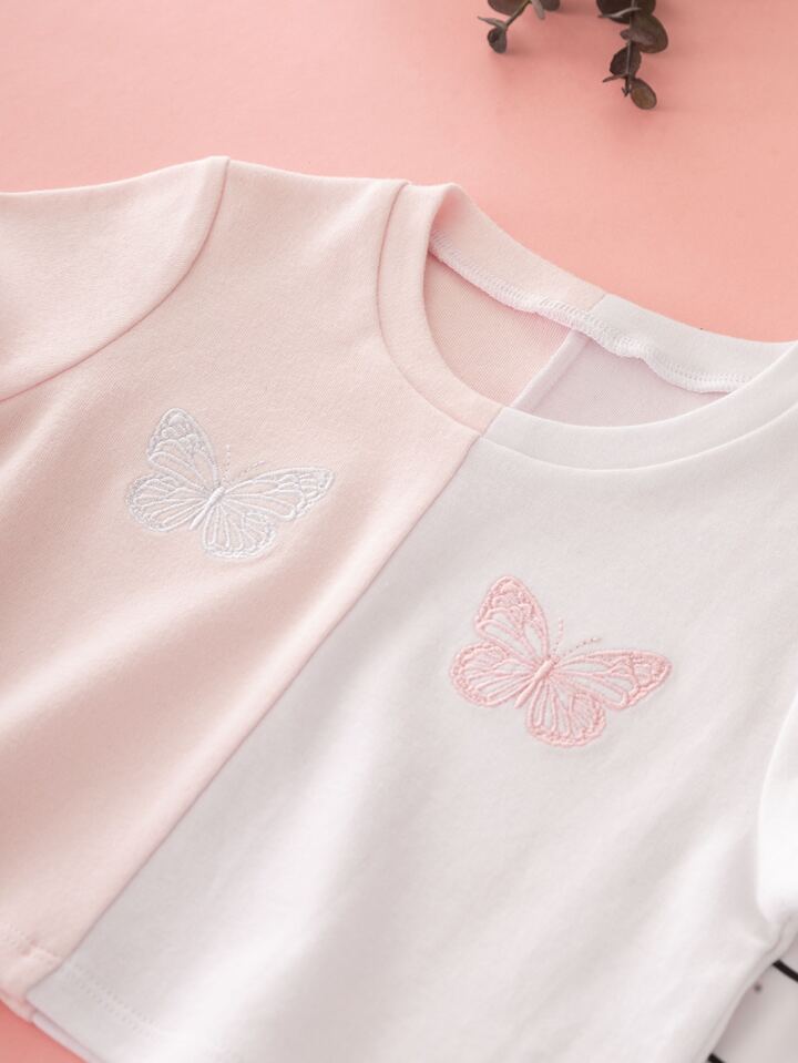 Bébé fille bicolore papillon T-shirt & à carreaux Pantalon