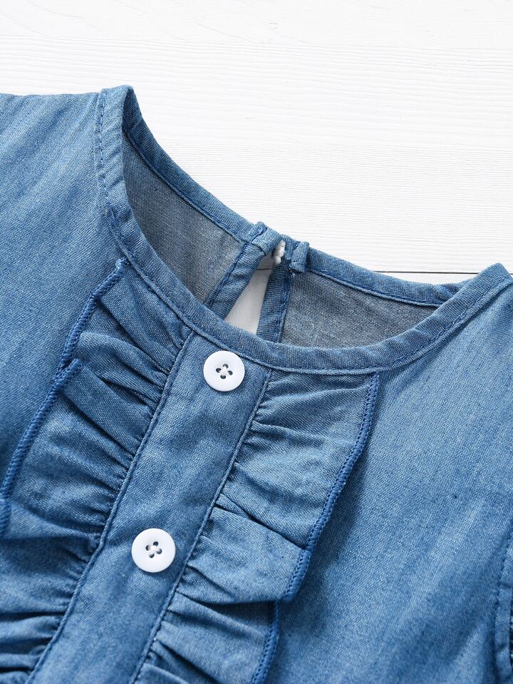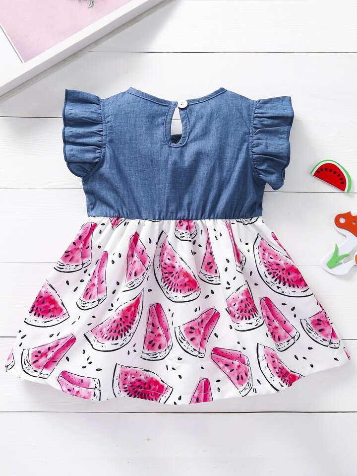 Bébé fille Robe en jean à imprimé pastèque à volants 2 en 1