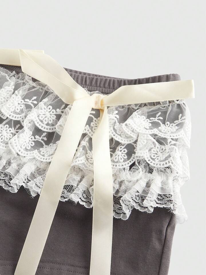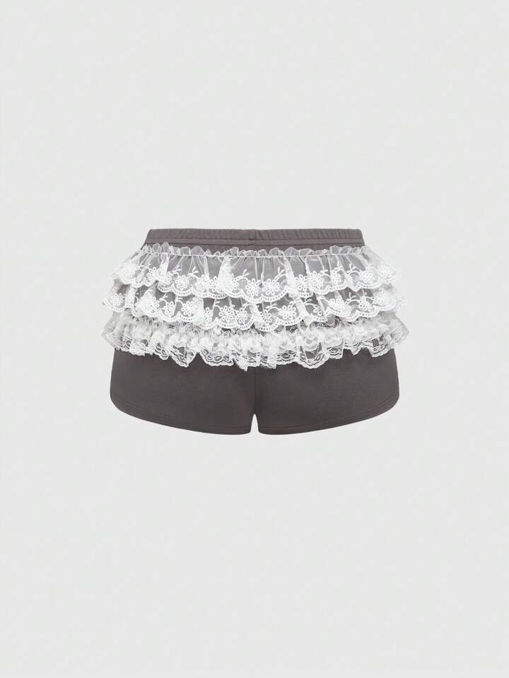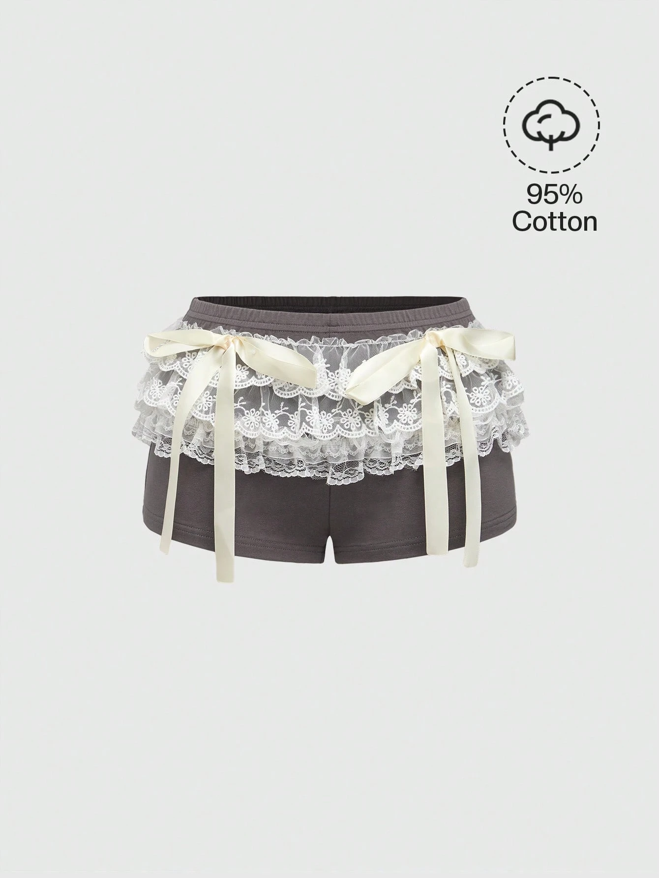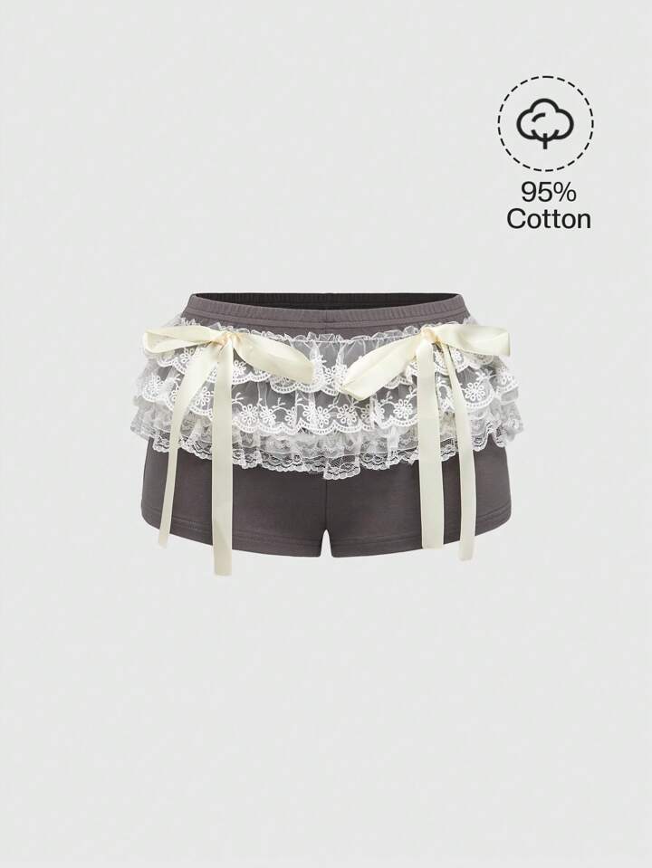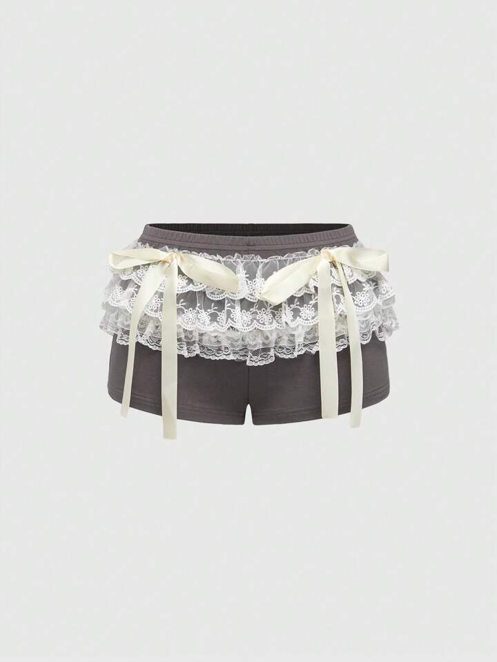 ROMWE Avant Short style ballet en maille de dentelle multicouche avec détail nœud, taille ultra-basse, athlétique