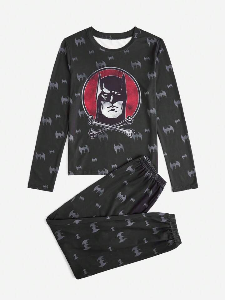 Batman X ROMWE Ensemble Pyjama Pantalon & T-Shirt Dessin Animé