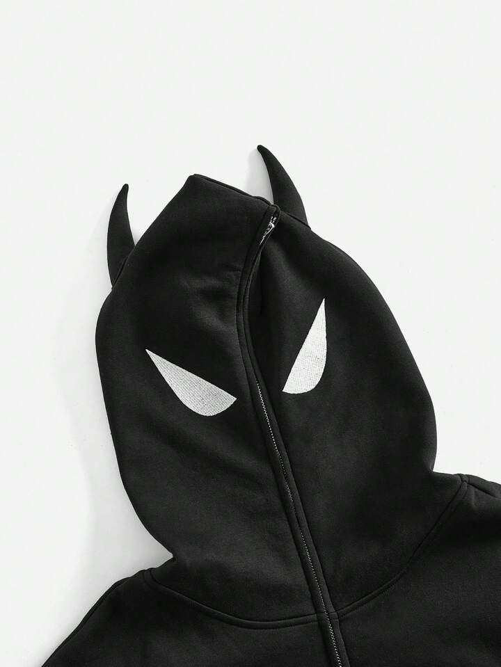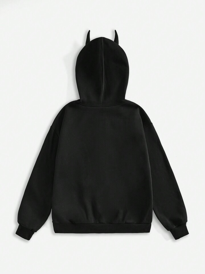 Batman X ROMWE Pull à capuche grandes tailles avec logo brodé et décoration d'oreilles de chauve-souris 3D