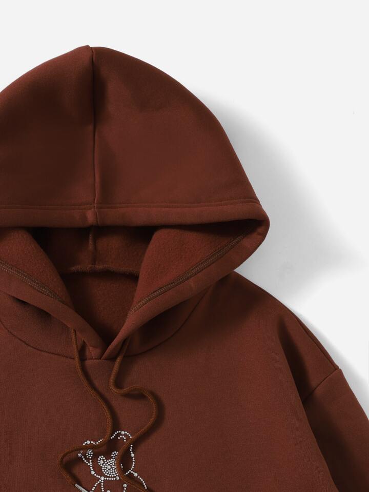 Sweat-shirt à capuche ours à strass à doublure thermique