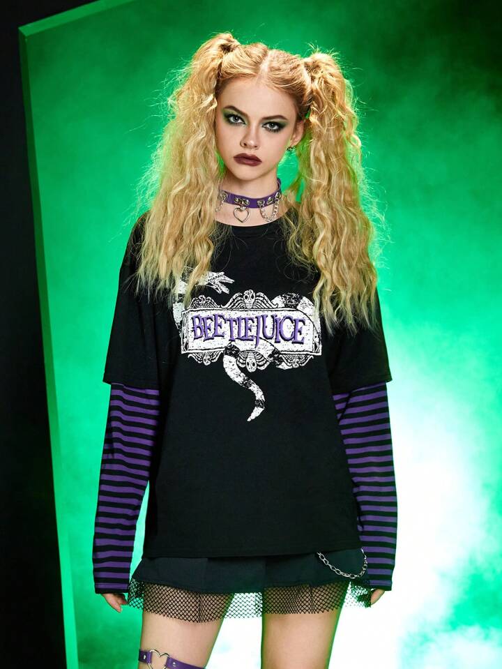 Beetlejuice | ROMWE T-shirt 2 en 1 À Rayures À Lettres